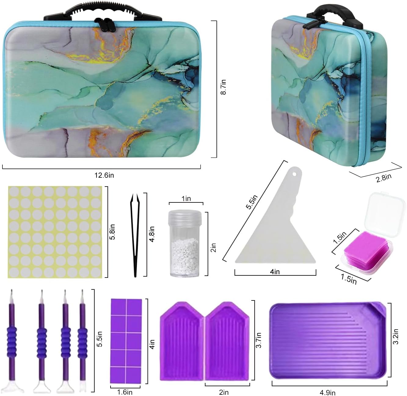 【Diamond Painting Kits】The green marble pattern storage box is full of art. It is made of EVA material with retractable handle and two-way zipper for easy storage and carrying.
