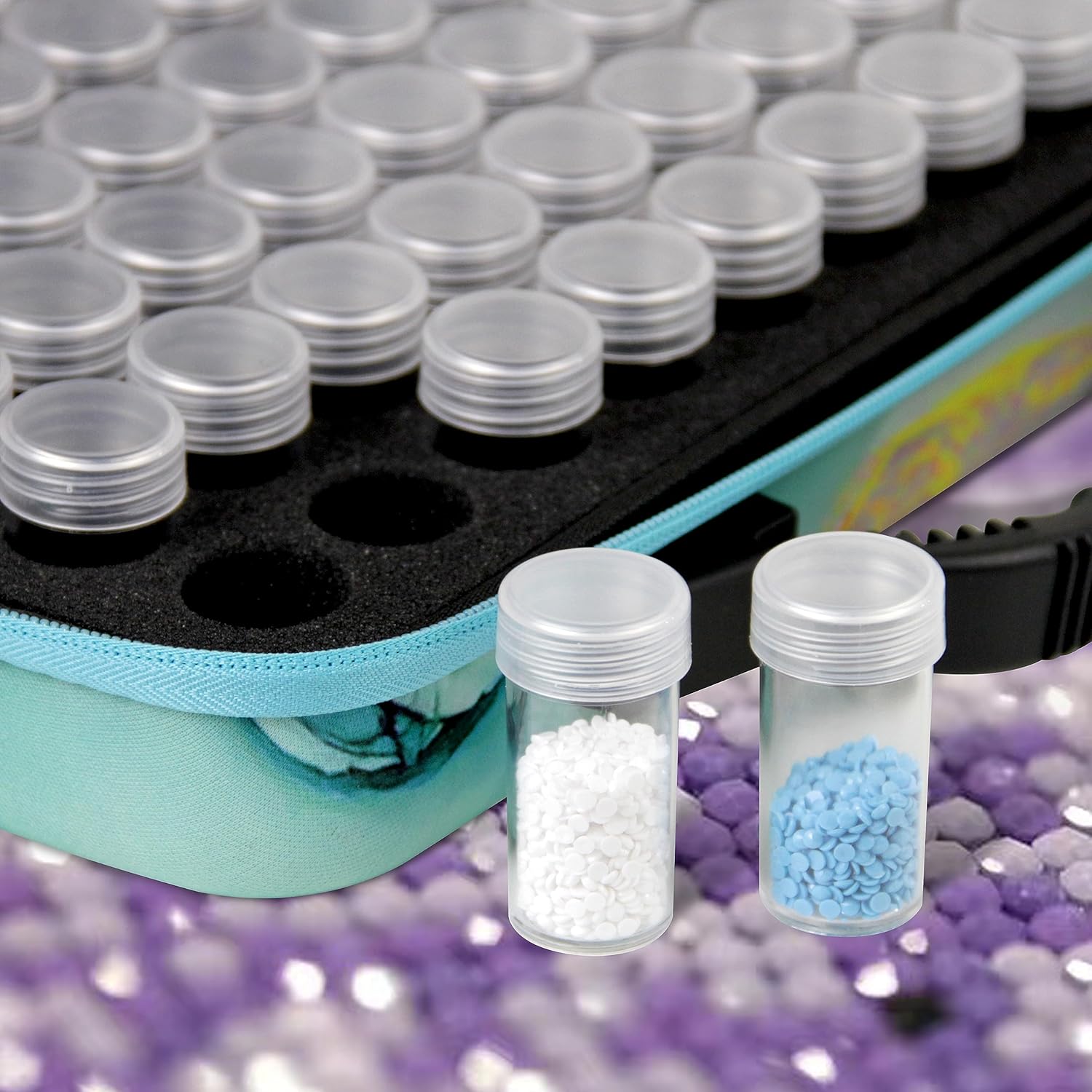 【Large Capacity Diamond Painting Accessories】There are 70 diamond storage jars with foam bases for storing diamonds, jewelry beads, nail decorations, necklaces and more. A mesh bag to store your other diamond painting tools and to keep all your craft and beadwork supplies in one bag.