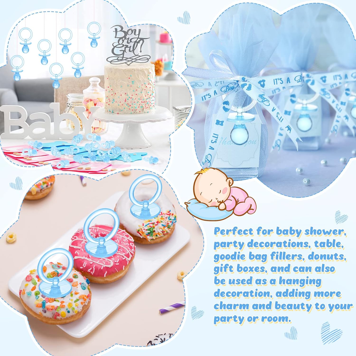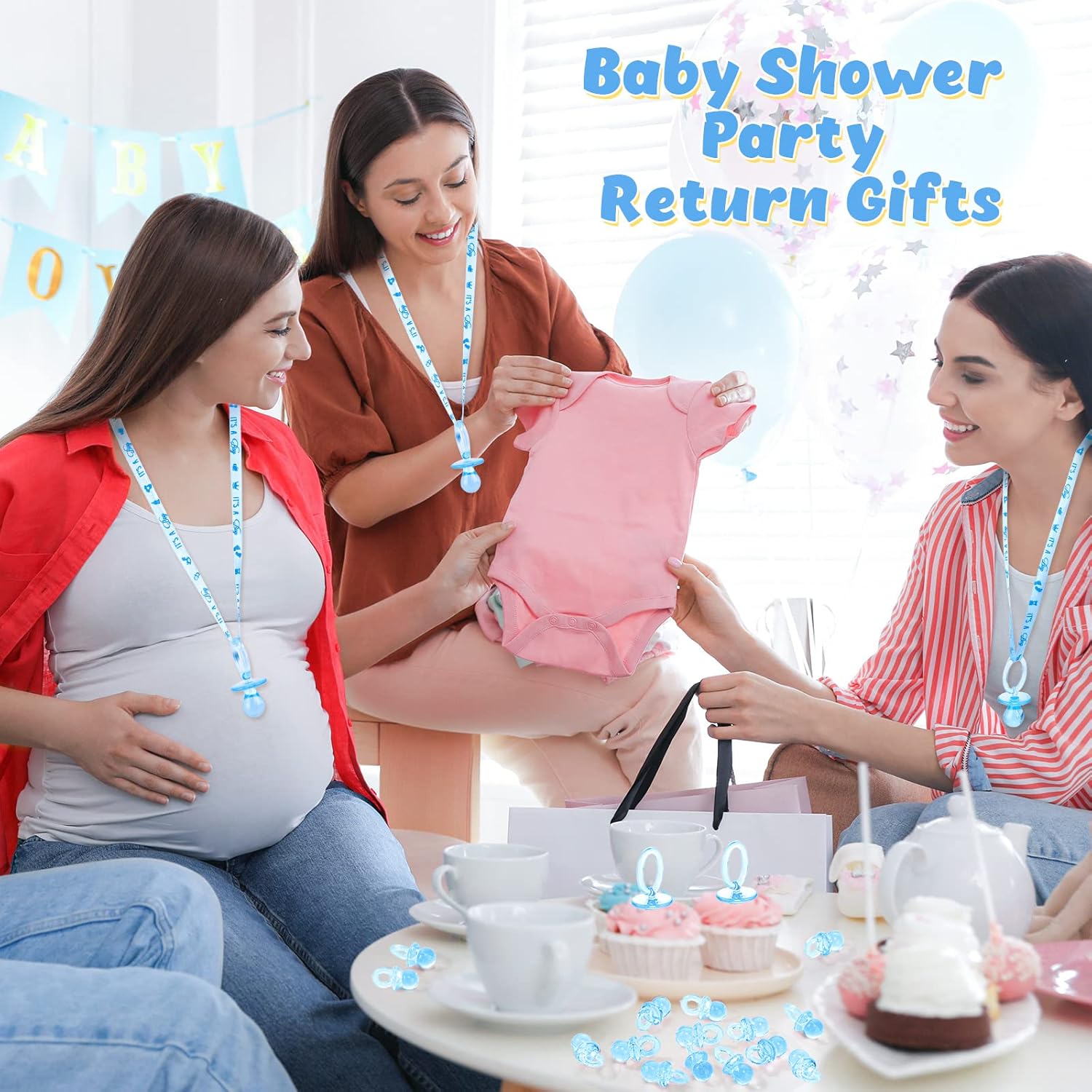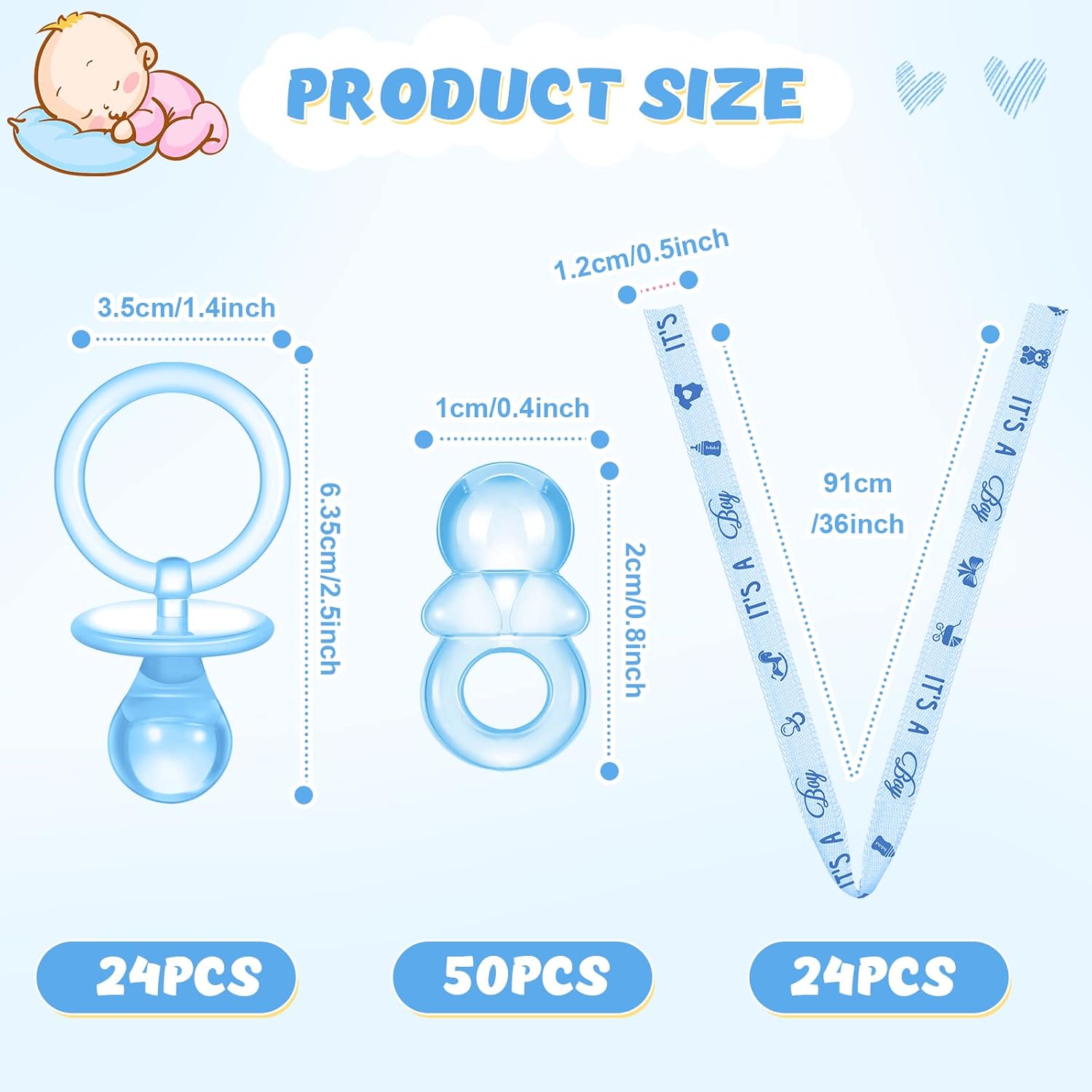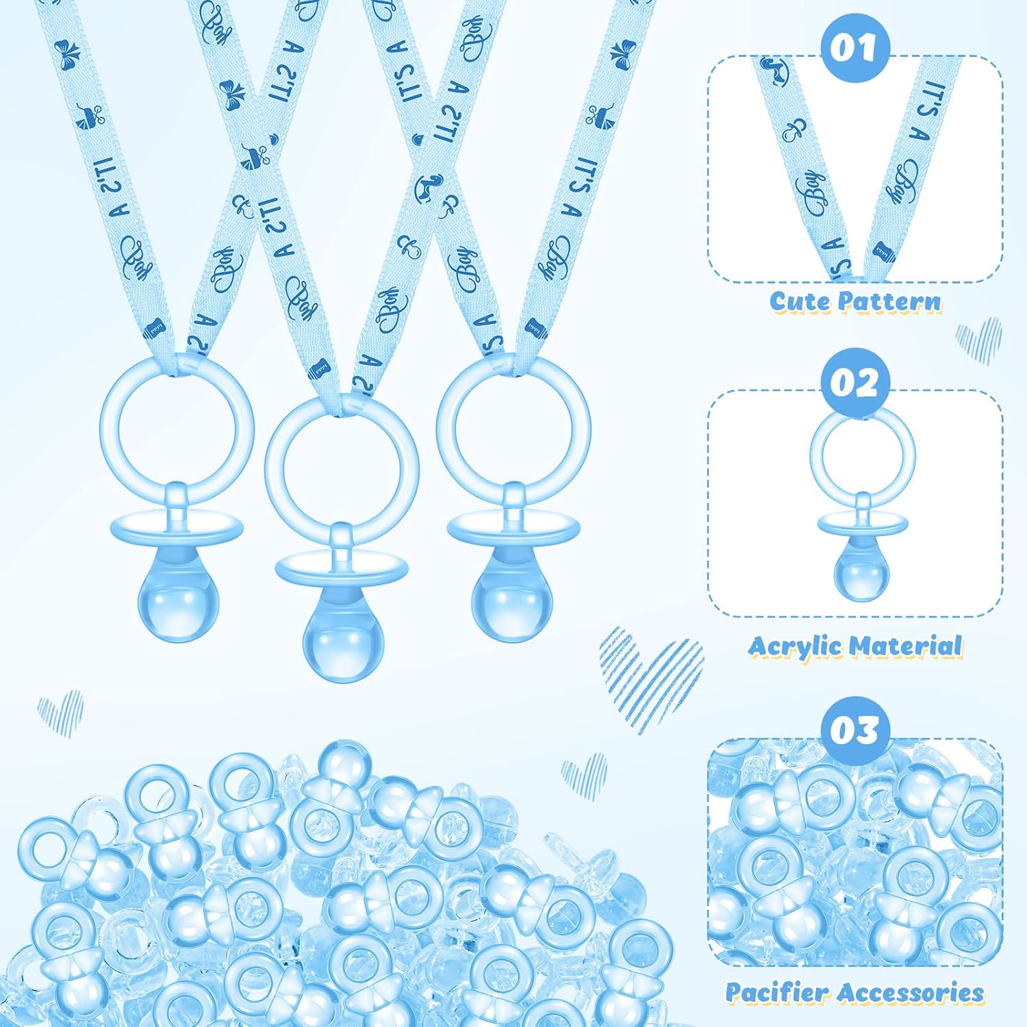 74 Pieces Baby Shower Pacifiers 24 Necklace Acrylic Baby Pacifiers Party Favors 50 Mini Plastic Pacifiers Charm Bulk for Girls Boys Baby Shower Party Decorations Games Table Scatter(Blue)