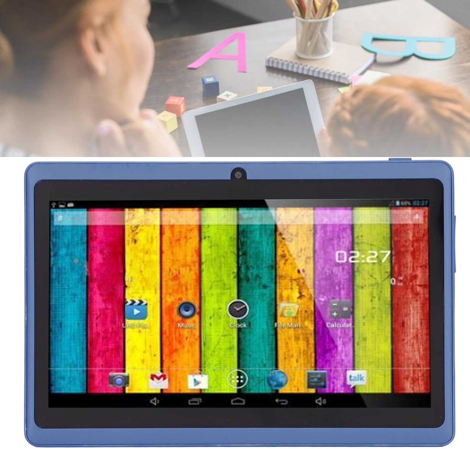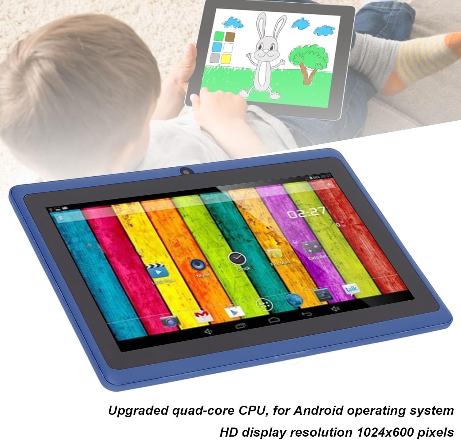 7in Tablet PC, Quad Core CPU Processor, HD Eye Screen, 512MB ROM 8GB, Kids Tablet Support WiFi Bluetooth Dual Camera for Android(Blue)