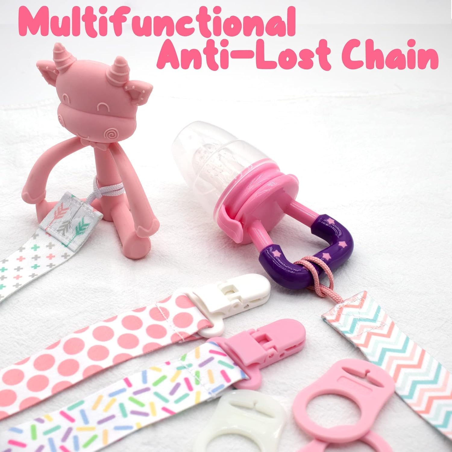 8 Pcs Dummy Clips Girls Baby Pacifier Holder Soother Clip Chain Straps with Plastic Clasp, Silicone Ring Adapter, Fit All Dummies & Soothers & Teething Toys, Newborn Essentials