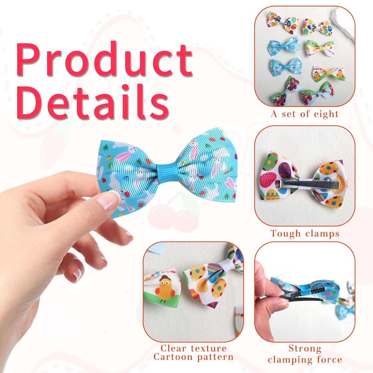 Package included: You will get 8 pcs Easter hair clips,4 patterns, these colorful Easter bow hairpins will make your daughter or niece even more adorable.