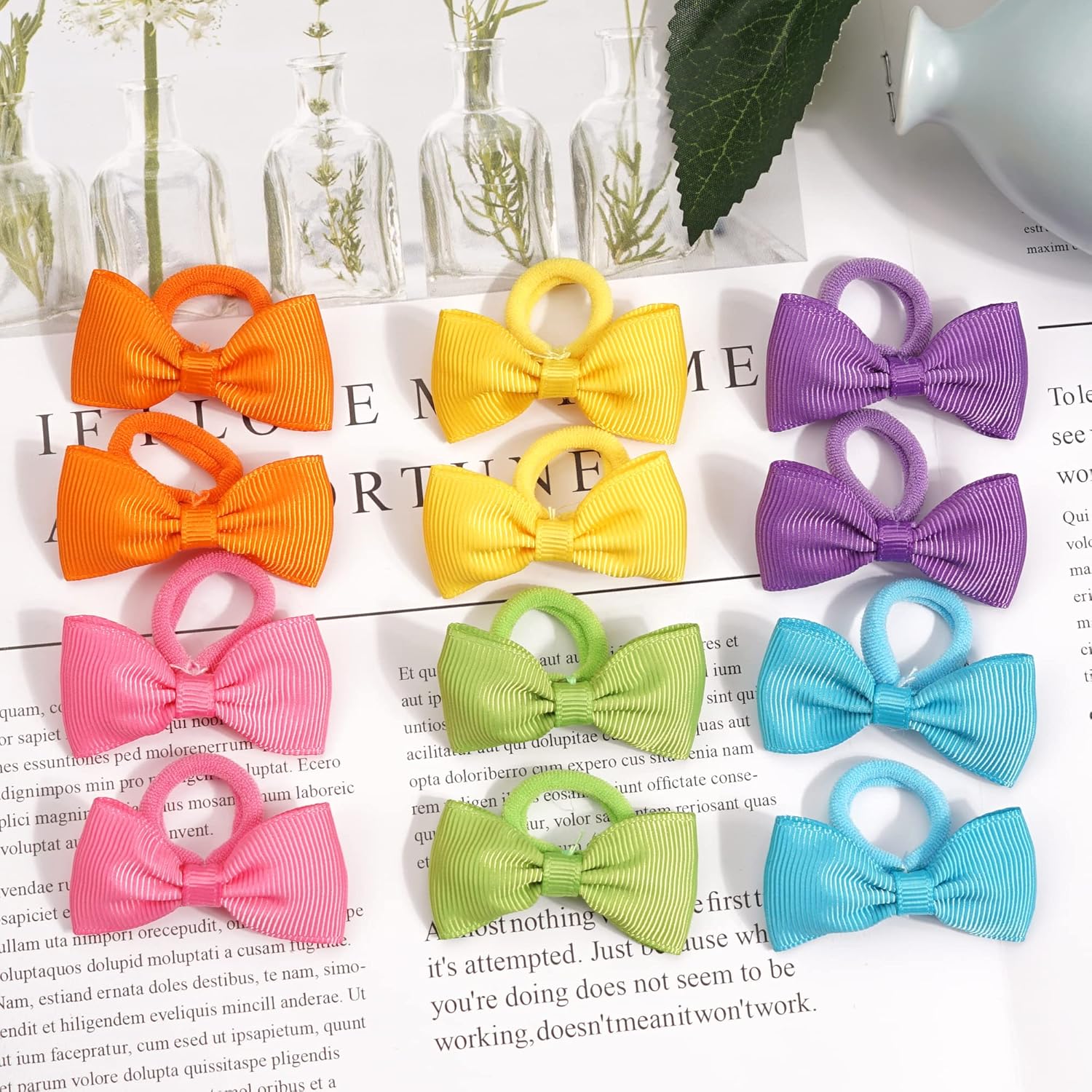 80PCS Tiny Hair Ties With Bows Baby Bows Rubber Bands Hair Ties Soft Elastics Ponytail Holders Hair Accessories for Infants Toddlers Baby Girls Multi-colored