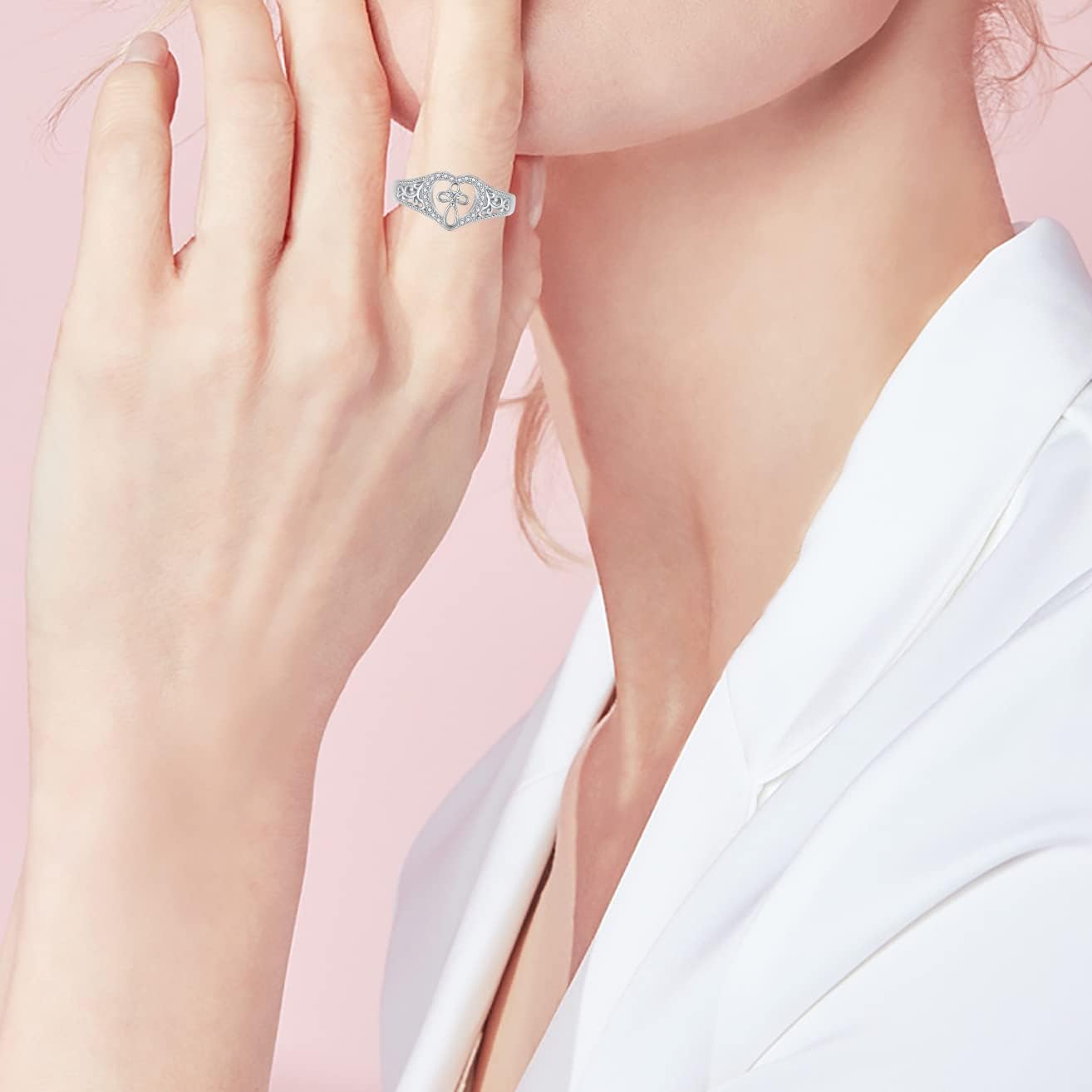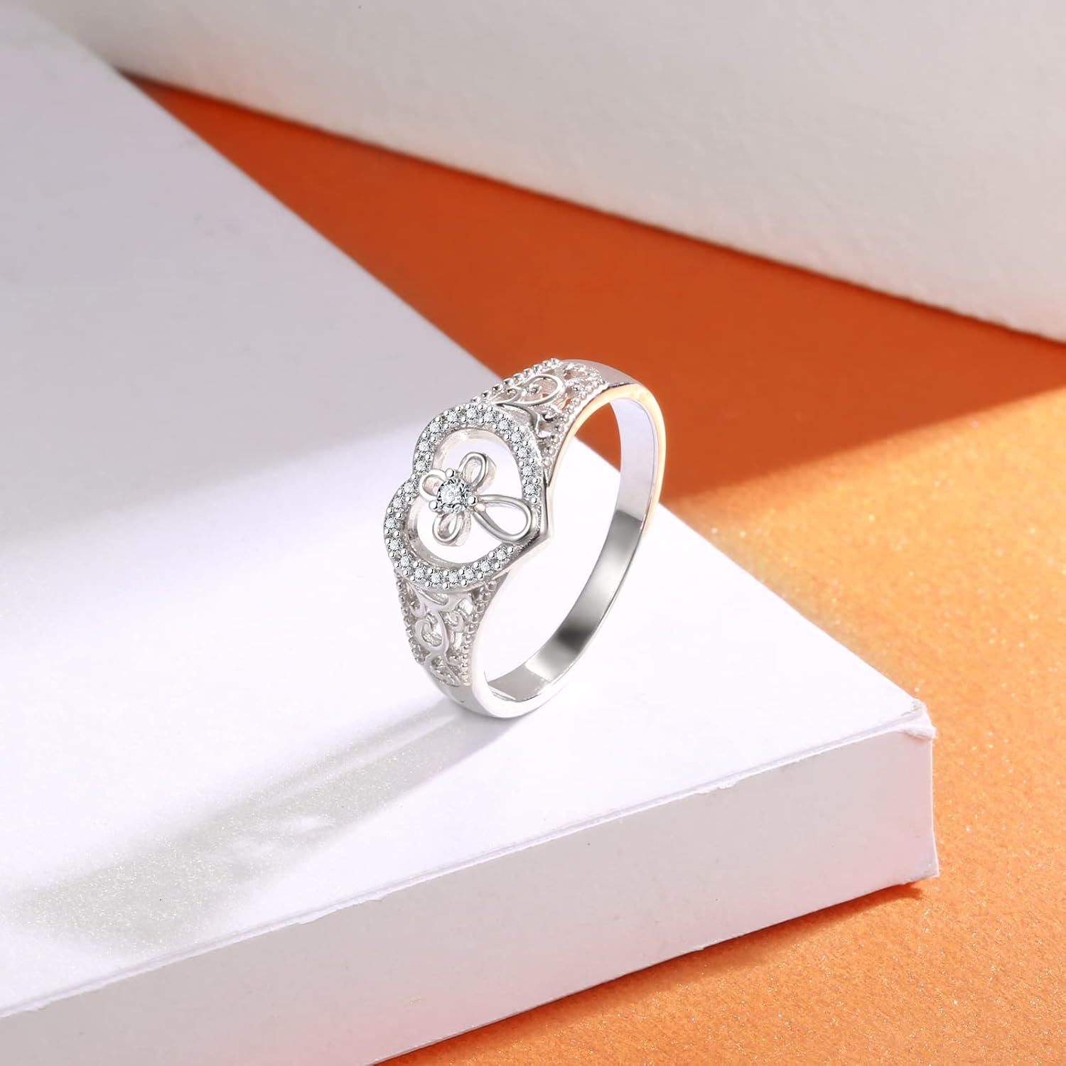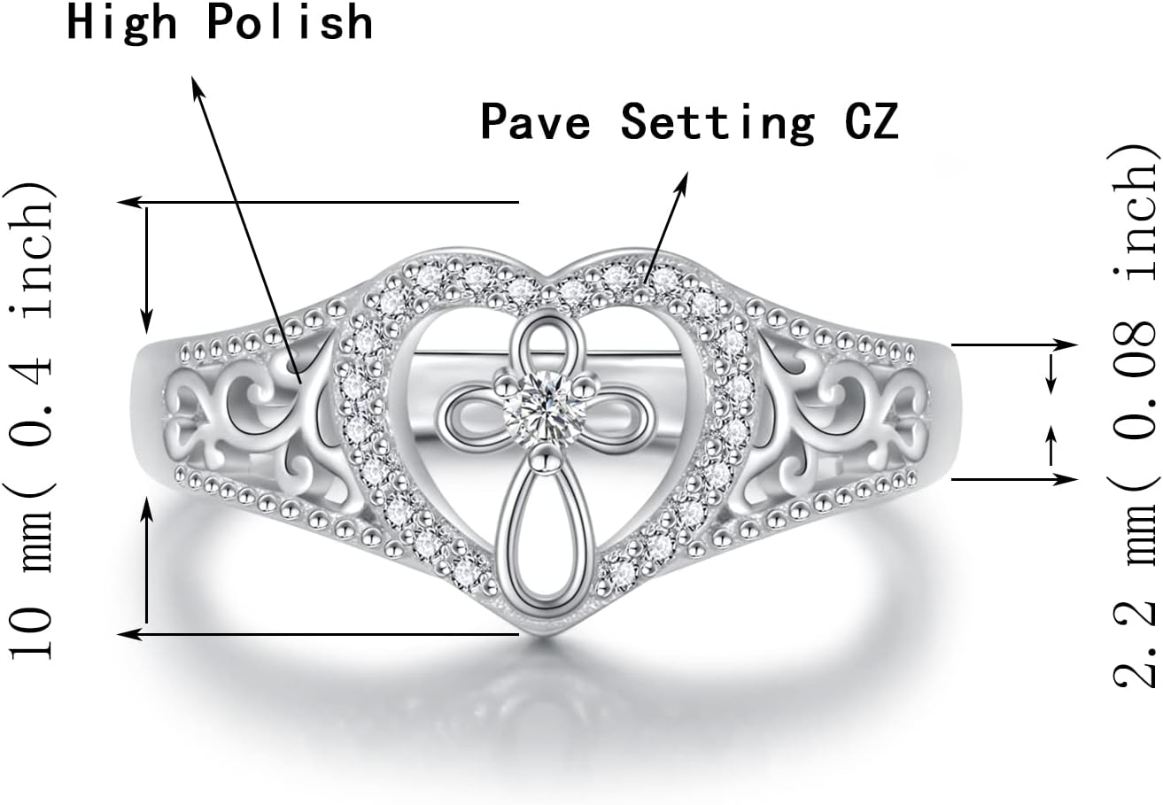 925 Sterling Silver Heart Cross Ring Christian Faith Religious Jewelry Gifts for Women Girls