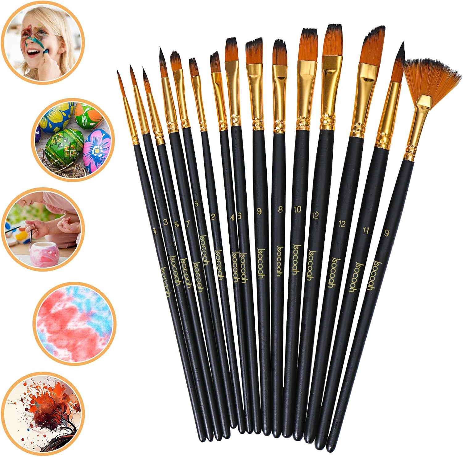 Get The Right Fit: Jsocoah acrylic and water color brushes come in 15 different sizes ranging from 1 – 15 to provide a suitable fit for acrylic paints, oil paints, and watercolors. They are ideal for artists and painters of all skill levels to help you make precise strokes every time .