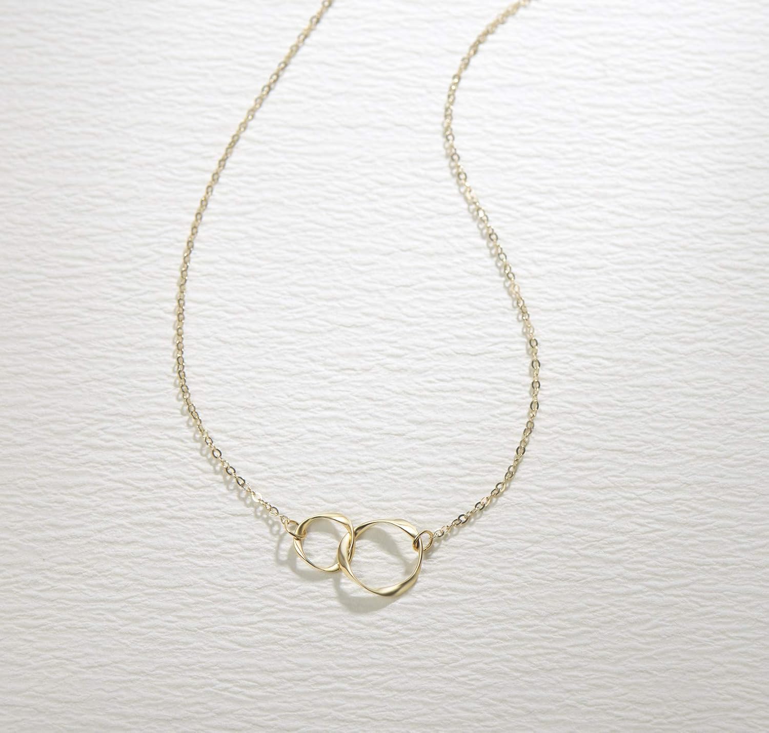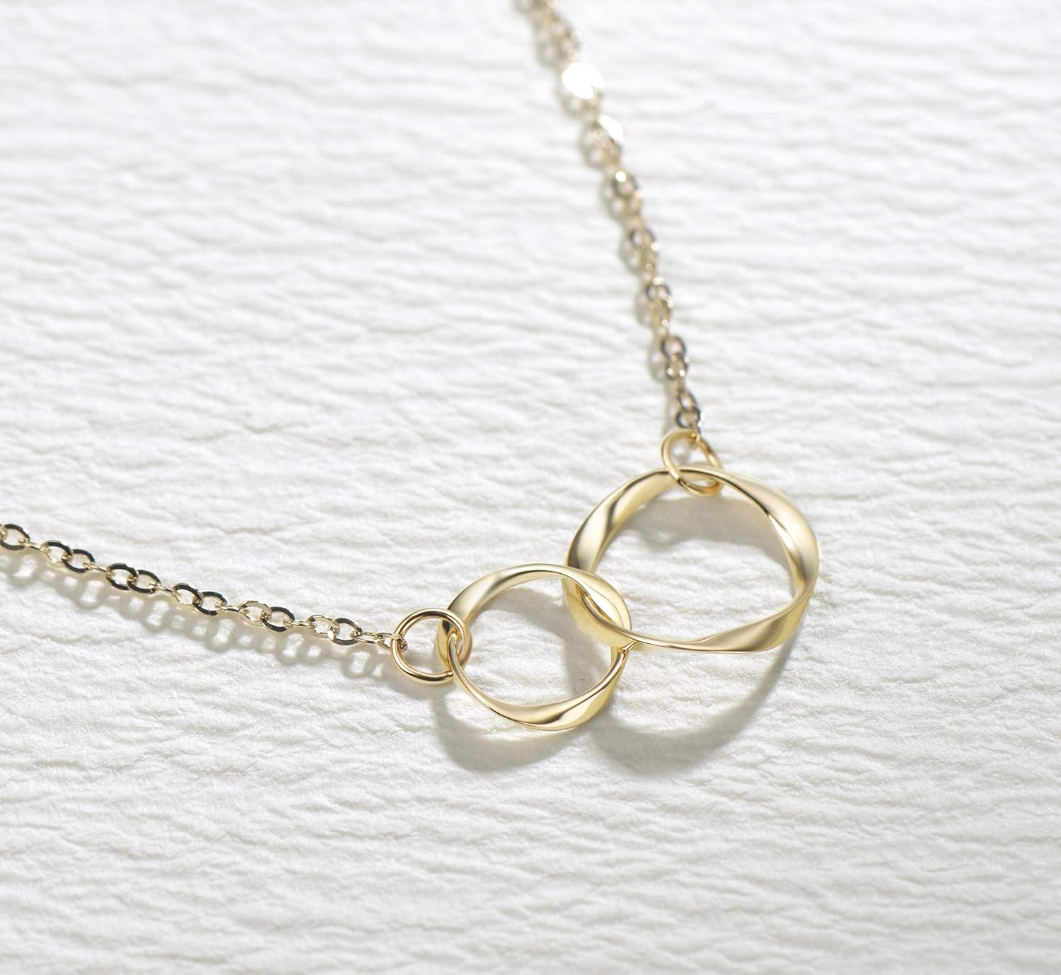 AGVANA 14K Real Gold Necklace Bracelet for Women Mothers Day Gifts for Mom Two Interlocking Eternity Circles Mother Daughter Necklace Bracelet Fine Jewelry Birthday Gifts for Women Girls Mom Wife Her