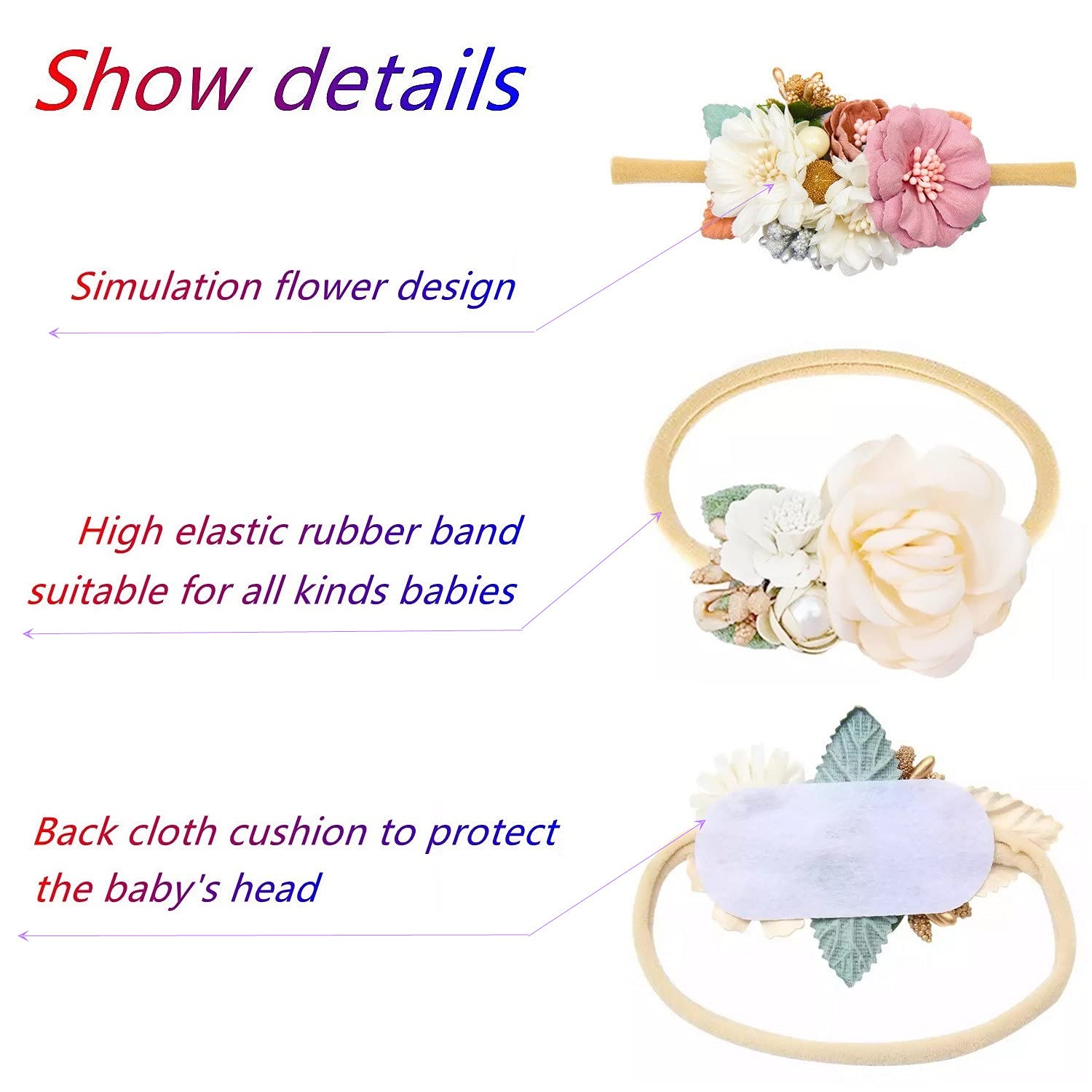 Super soft nylon: Comfortable and soft unique baby girl flower headband are made of high quality nylon. It is safe, odorless and non-irritating to sensitive baby skin. Our floral headband is designed with a soft nylon drawstring and cushion on the back, which is very soft, light and comfortable, and will not leave any marks even if the baby wears it for a day.