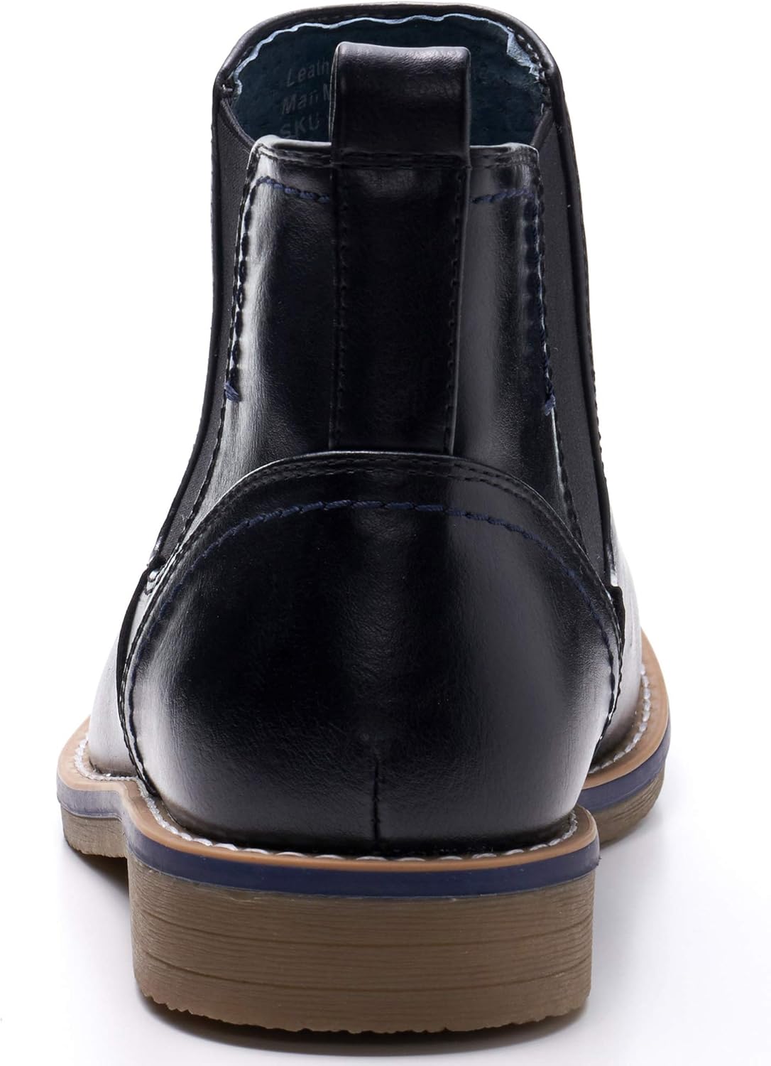 Owen Chelsea Boots By Alpine Swiss Our new Owen ankle boots are a classic chelsea boot design that will become a staple in your wardrobe. The timeless silhouette is versatile enough for your formal or casual outfits. Product Features: Manmade Upper, Leather Lining and Insoles Classic chelsea boot silhouette Smooth faux leather upper Twin elastic side panels for a secure fit Pull on tab for easy slip-on Navy and white contrast stitching Lightly padded footbed 4.25″ Shaft for size 9, other sizes may vary Medium width MSRP $97.50