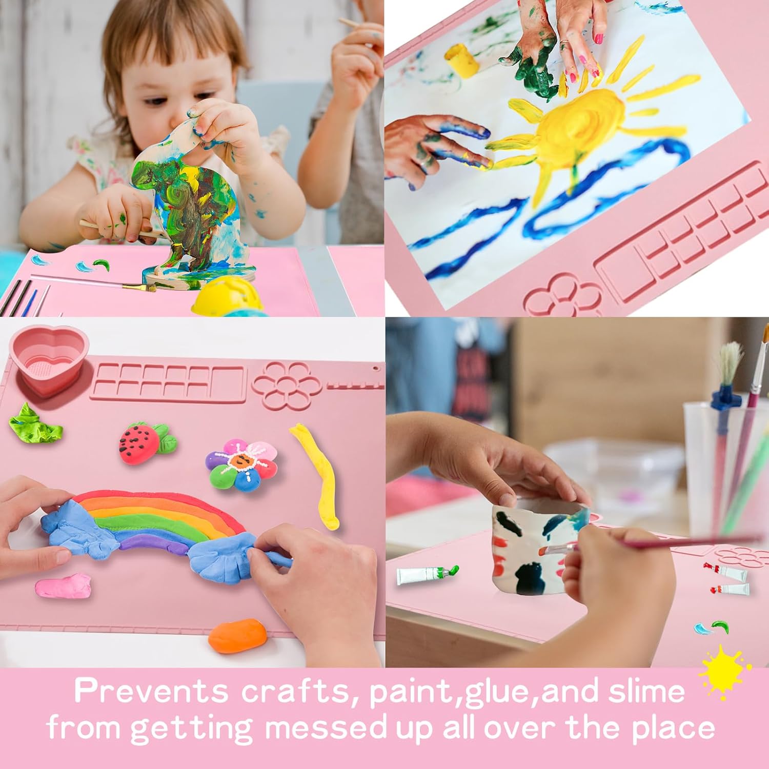 【Food Grade Painting Mat】The silicone painting mat is made of food-grade silicone, which is flexible, non-stick paint, waterproof, heat-resistant, non-fading, non-staining, durable and not easy to deform or tear. The silicone mat for all arts and crafts is safe to use.