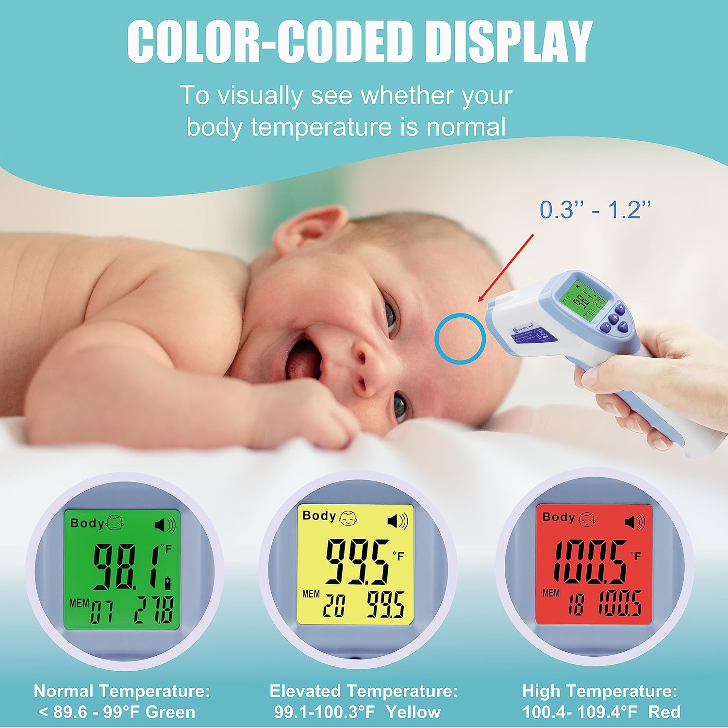 Touchless Design: With a non-contact thermometer gun design, this digital infrared thermometer is hygienic and convenient to use, ensuring accurate results without any physical skin contact