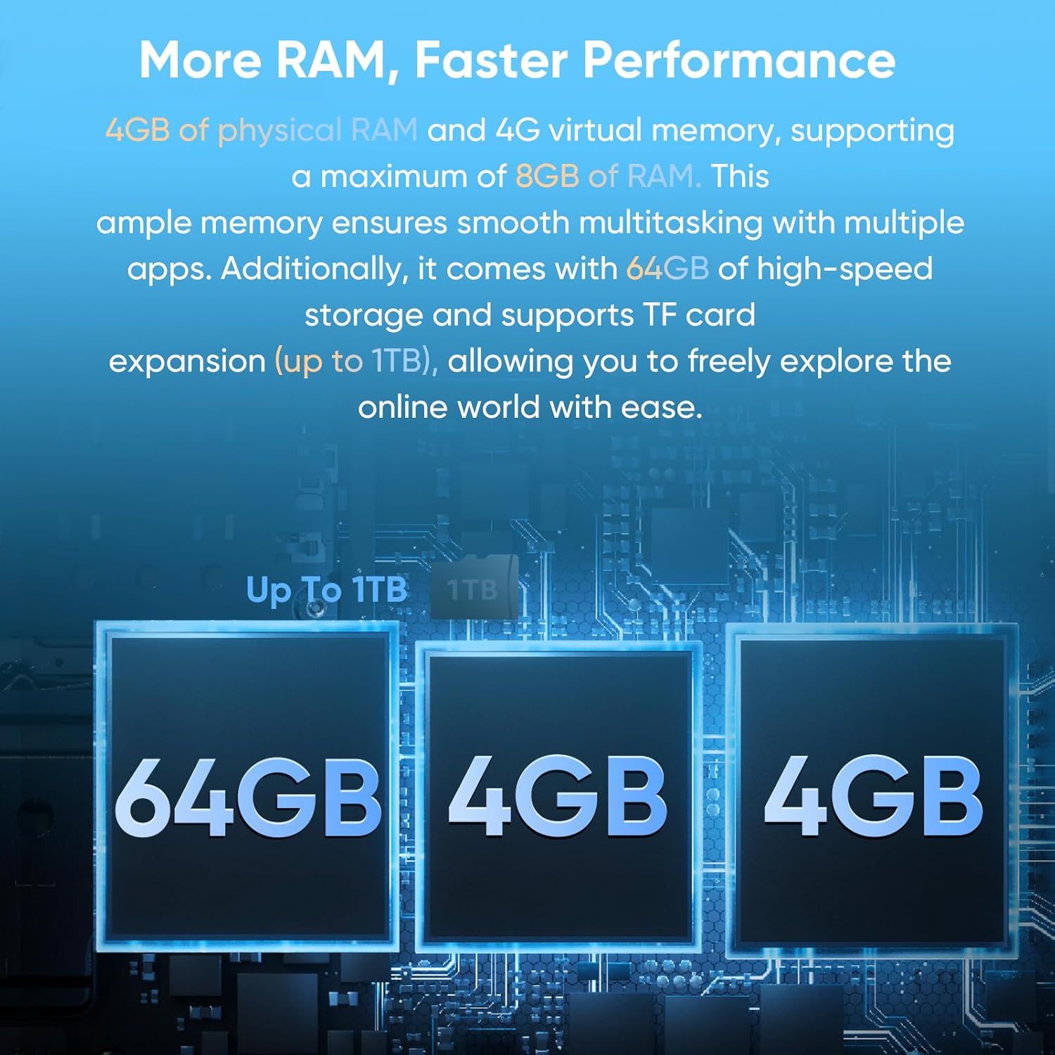 Exceptional Performance: Experience unparalleled speed and efficiency with a massive 128GB RAM and 8GB ROM, ensuring seamless multitasking, quick app launches, and smooth performance for gaming, browsing, work, and study.