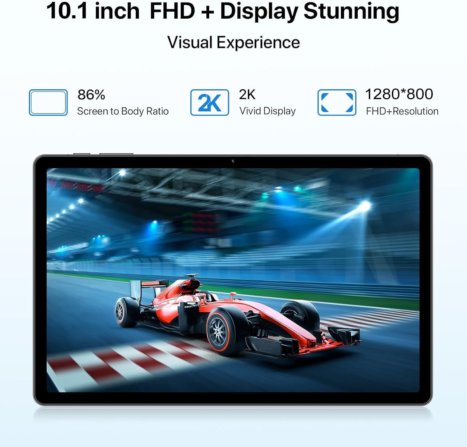 【10.1″ Display&TUV Low Blue Ligh】10.1 inch android tablet have full-color display, 1280*800 high resolution and 16:9 screen ratio view angle. lts maximum brightness is 320 nits and also it has the TUV Blue Light funtion. You can easily enjoy reading e-books and watching videos on this android 13 tablet.