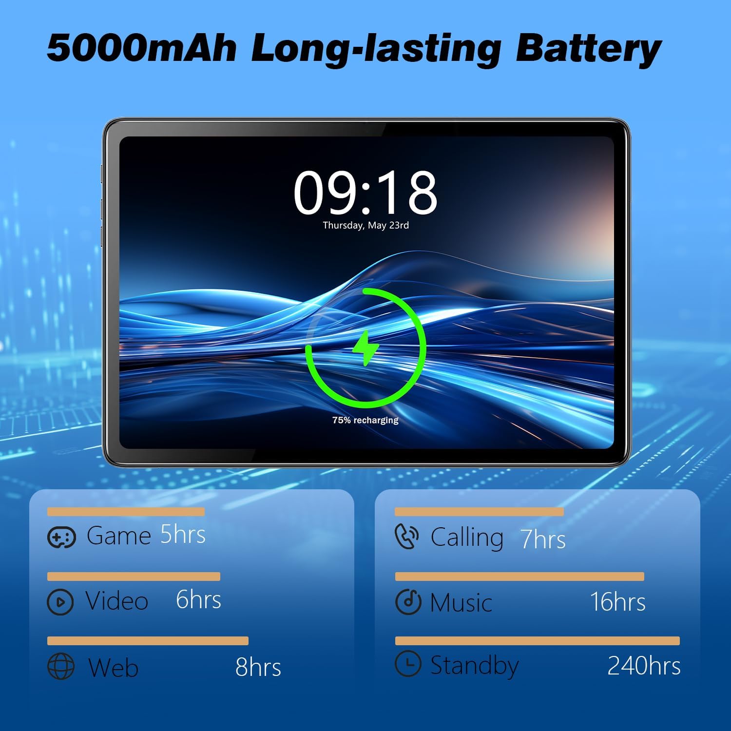 Long Battery Life: The tablet built-in 5000mAh battery can standby for up to 20 days! No need for frequent charging even on business trips or while traveling, so you can enjoy e-books, games, and videos for extended periods.