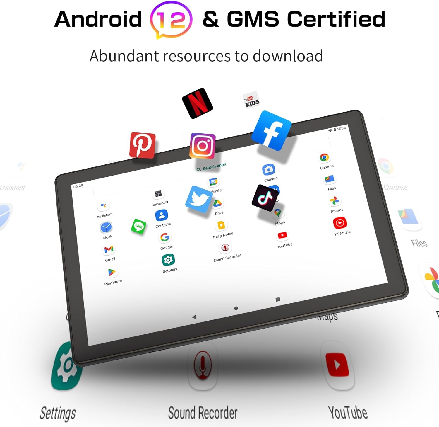 [Large storage space] – Android 12 tablets comes with 6GB(3+3) RAM & 64GB ROM of storage space, expandable to 512GB SD card (card not included). Feel free to store your favorite music, videos and apps to meet your daily entertainment needs.