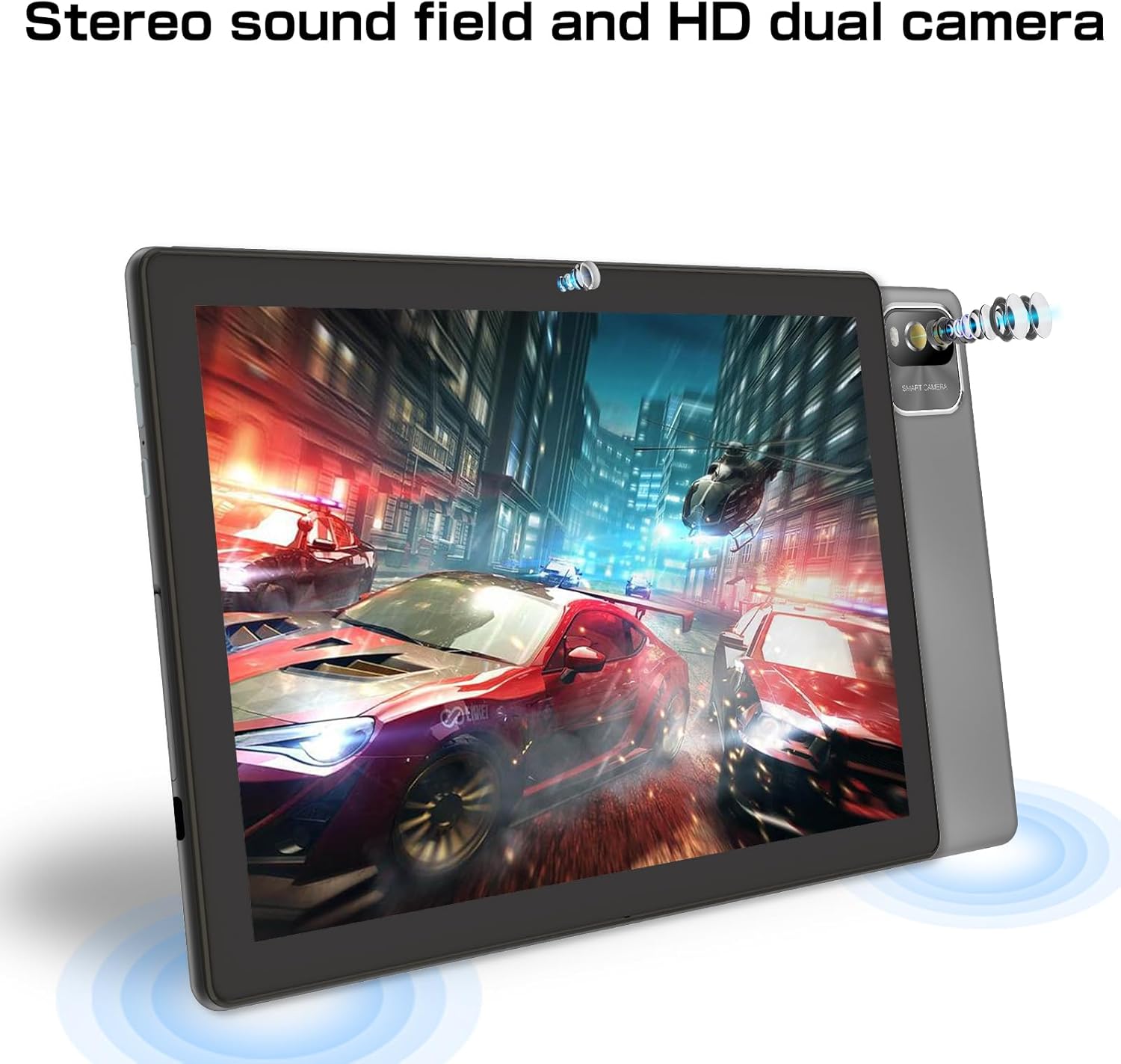[HD IPS Display and Dual Camera] – 10.1-inch tablet with high-resolution 1280*800 IPS display and “Reading Mode” option for enhanced eye protection. Dual cameras (8MP rear and 2MP front) take great photos and video chats.