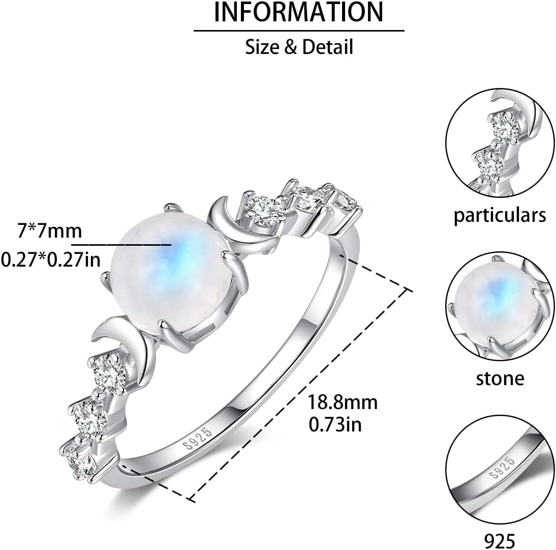 Angol Natural Moonstone Ring for Women, 925 Sterling Silver Triple Moon Goddess Engagement Promise Ring for Girls Anniversary, Birthday, Christmas, Valentine’s Day Gift for Her