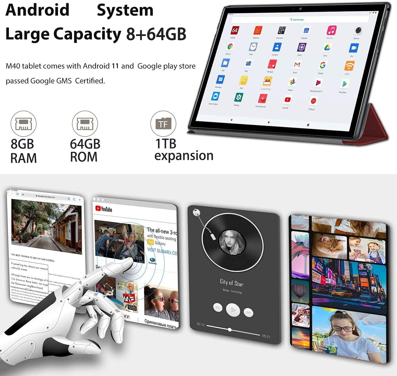 64GB ROM + 8GB(4+4GB virtual memory) RAM storage capacity, You can also expand the memory to 1TB, and store more apps, pictures, eBooks, music, or videos.