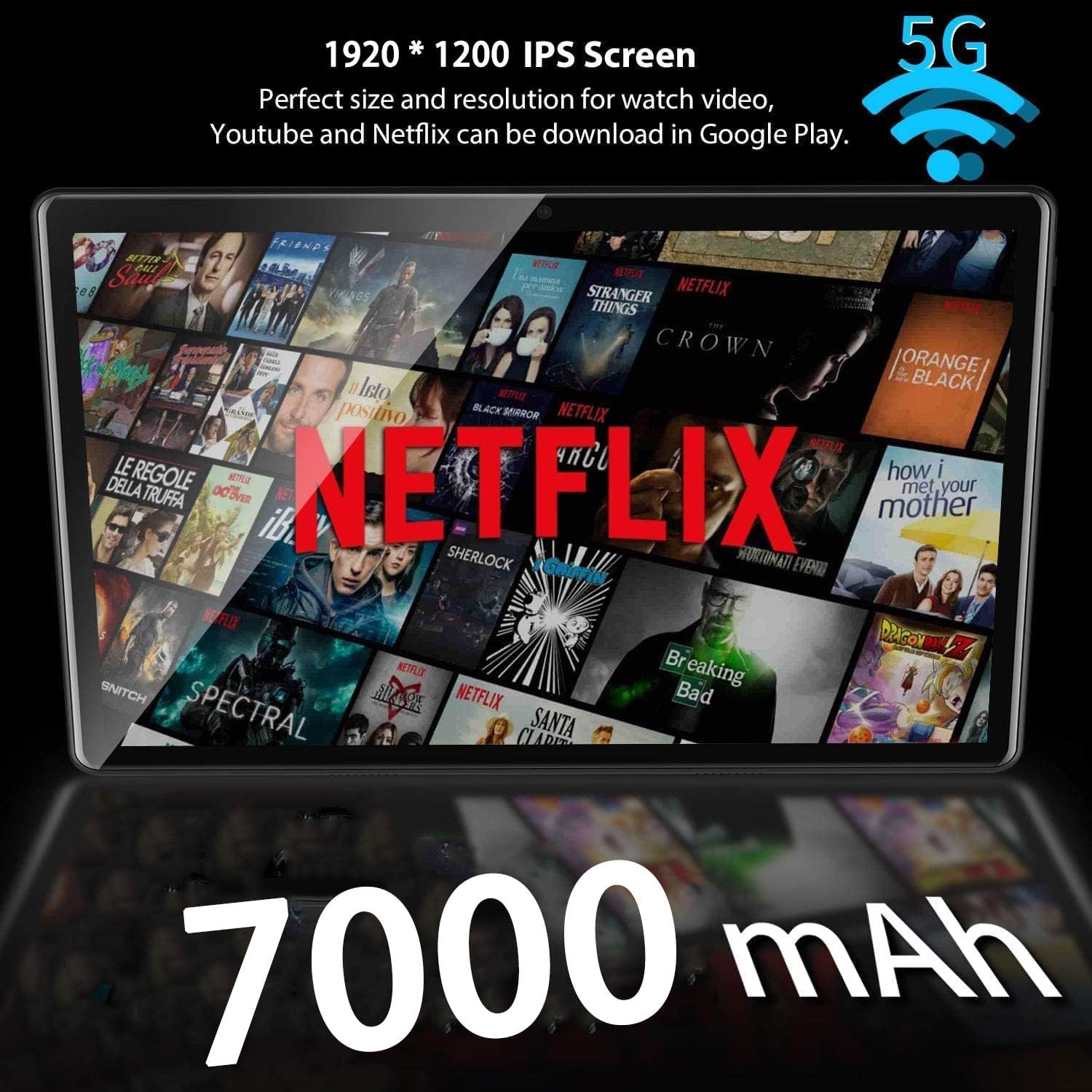 Please refer to Product DescriptionEquipped with a 7000 mAh battery, the 10-inch tablet will effortlessly provide you with a long time of support for reading, browsing, watching movies, and playing games.