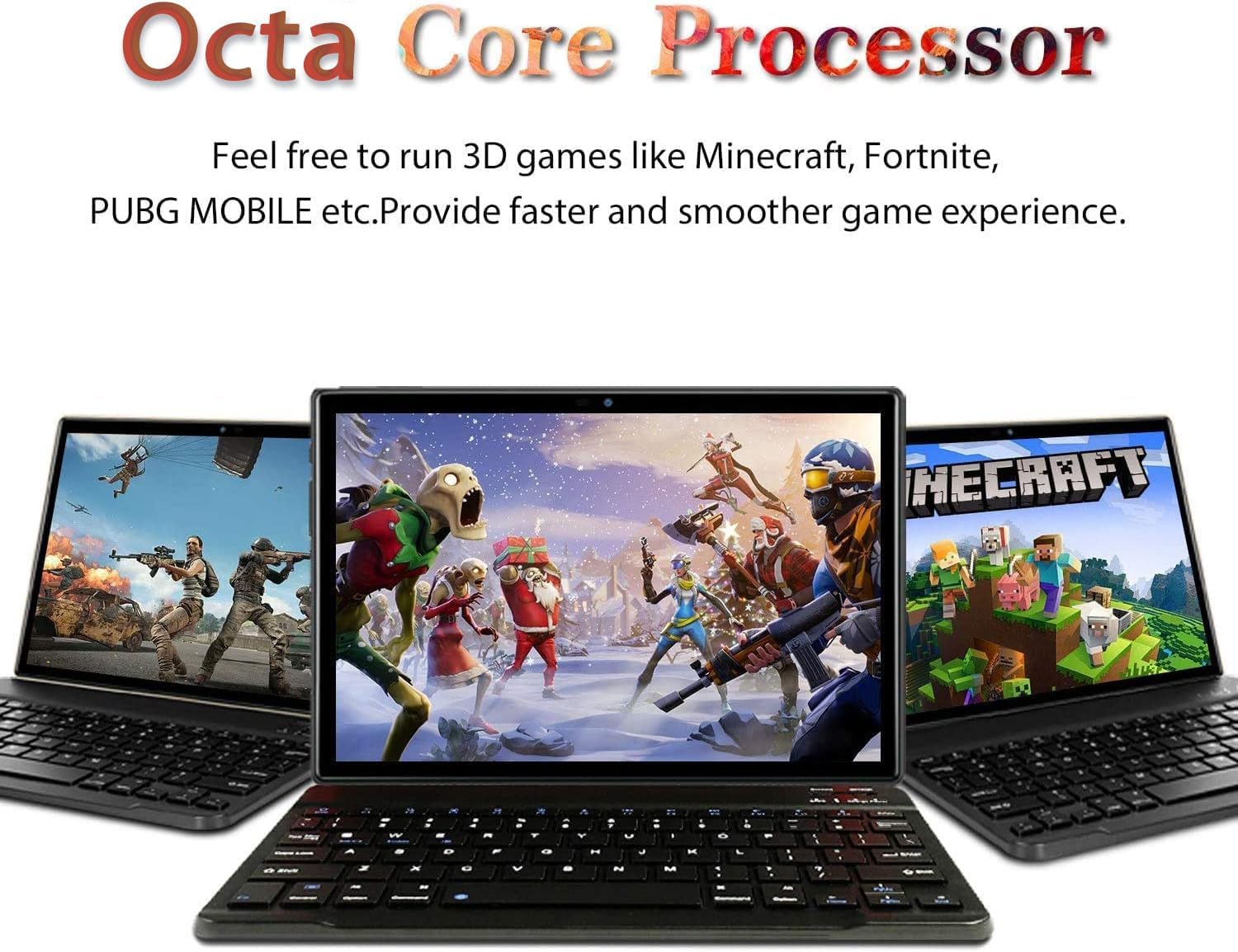 High Performance:The 10 inch tablet is equipped with the latest Android system and has a powerful octa core processor, 64GB ROM + 8GB(4+4GB virtual memory)RAM storage capacity & 2.0 GHz, with you a smooth and fast Internet experience. You can also expand the memory to 1TB, store more apps, pictures, eBooks, music or videos.