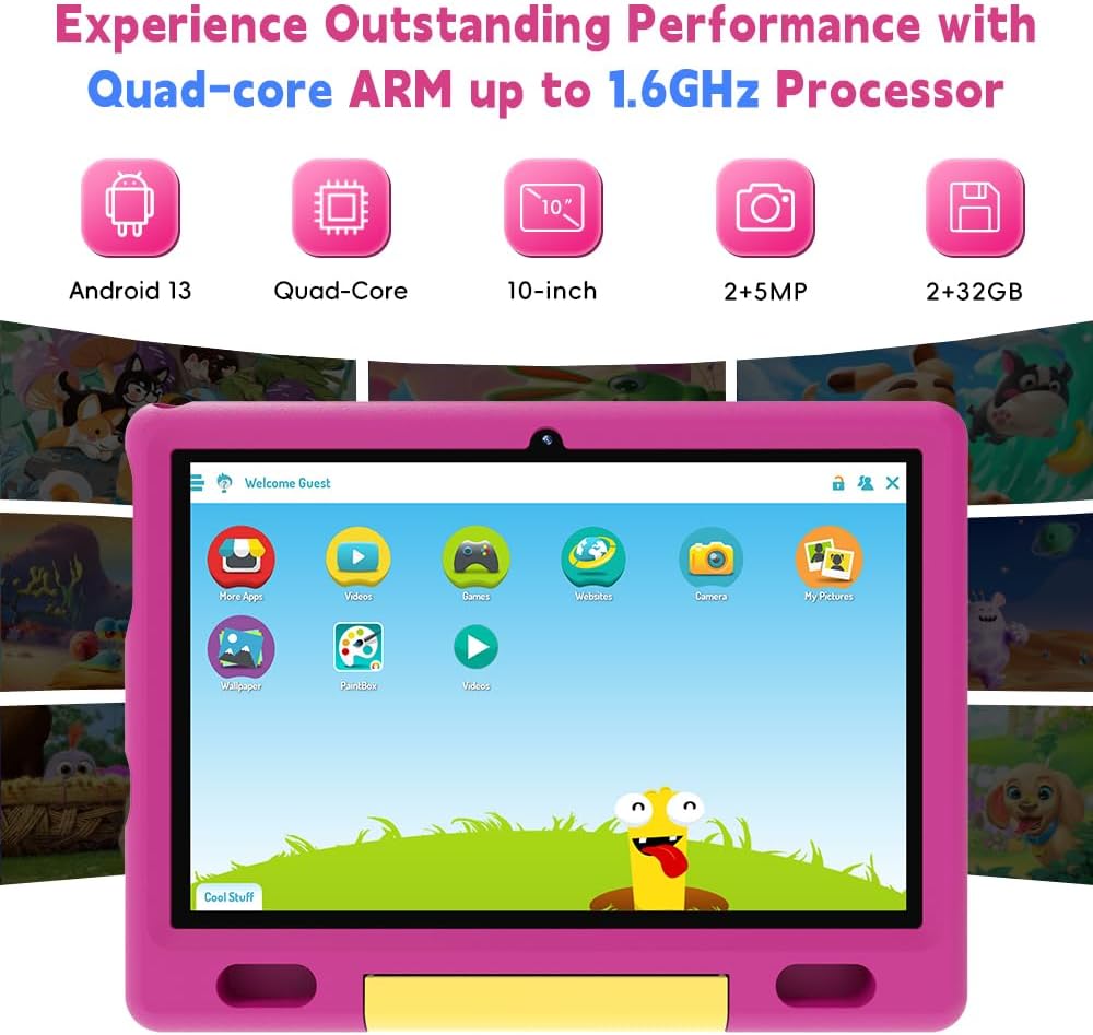 🎨[Pre-installed Kidoz APP & Parental Control] This kids tablet is pre-installed Kidoz APP and teacher-approved app, which offers a safe and fun digital environment for kids. Through functions such as animal coloring, simple handicrafts, listening to stories, and puzzle games, children can learn and grow in fun ways. You can set usage restrictions and select appropriate content based on your child’s age with the Family Link app, creating a safe online environment for children.