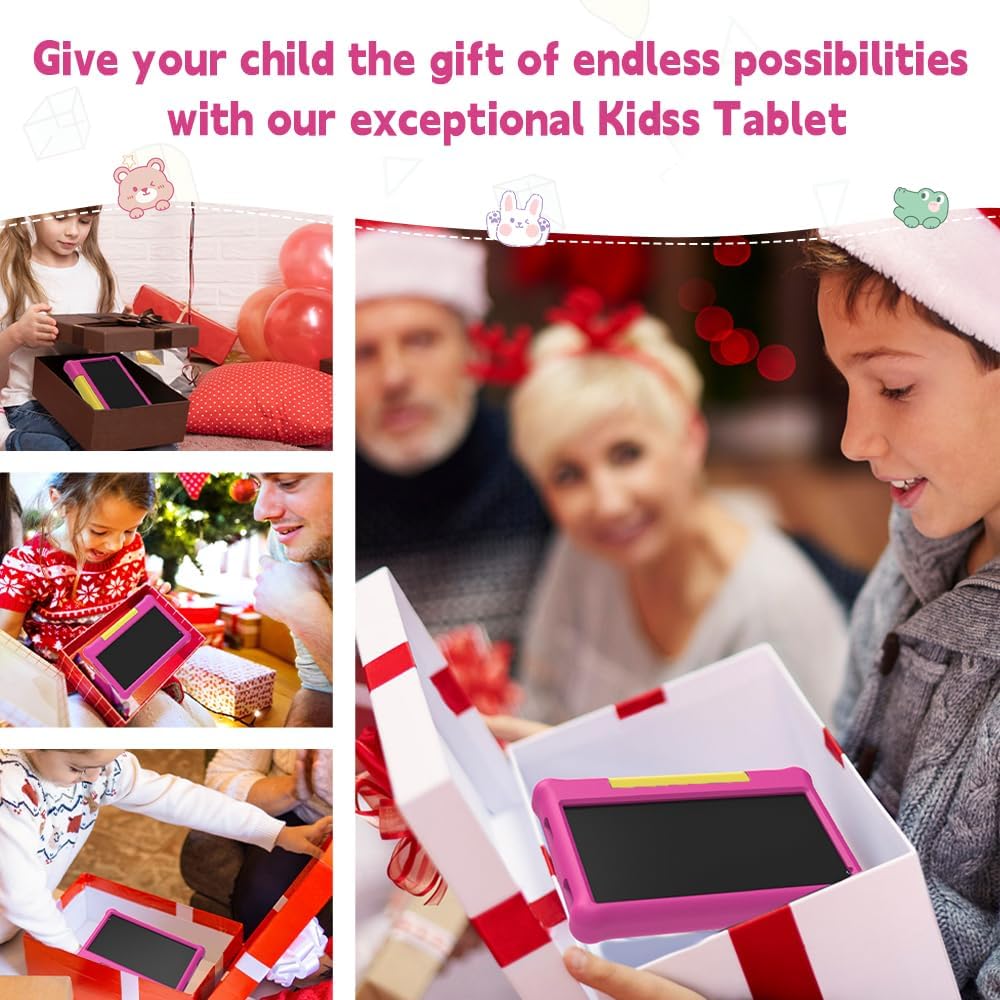 ApoloSign Kids Tablet, 7-inch Android 13 Tablet for Kids, 2GB RAM+32GB ROM with WiFi, Bluetooth, Parental Control APP, Educational Games, Dual Cameras, Shockproof Case(Pink)