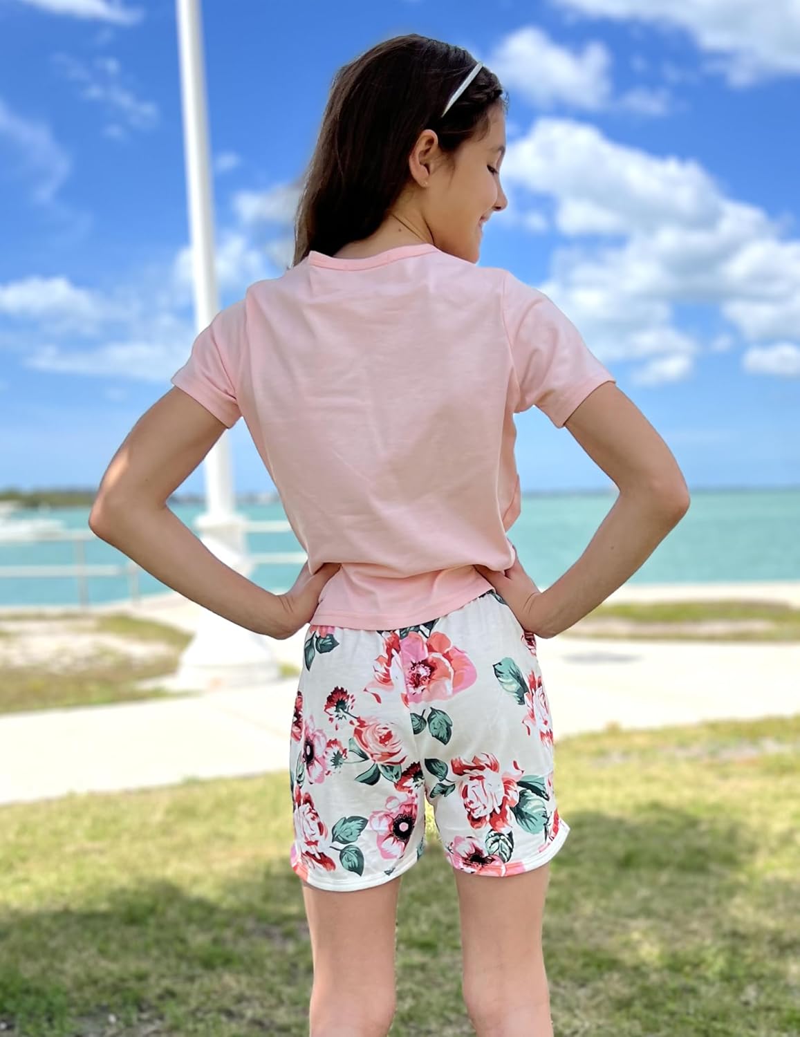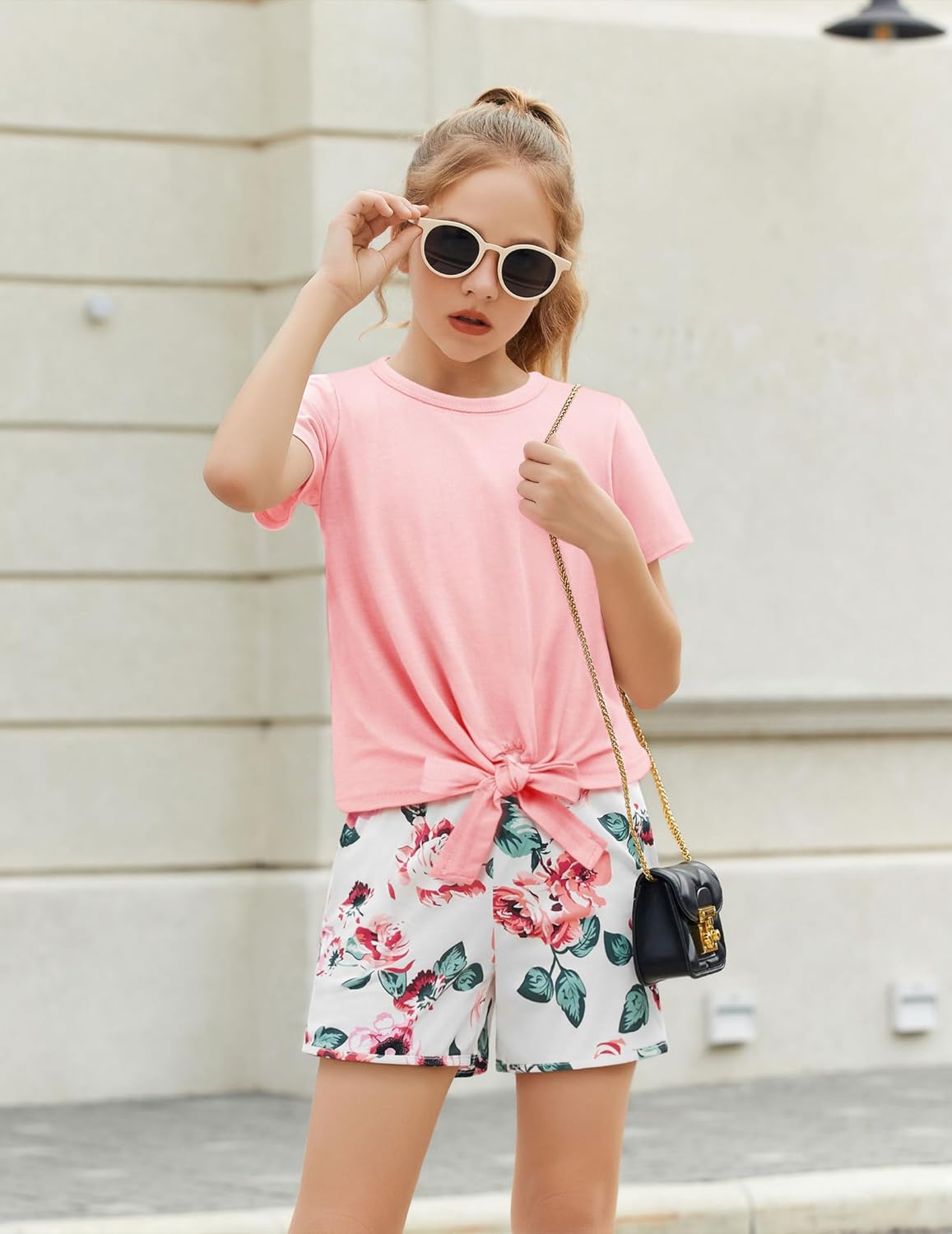 Arshiner Girls Summer Shorts Set Kids 2Pcs Tie Dye Sport T-Shirt and Shorts Set Floral Print Clothing Sets