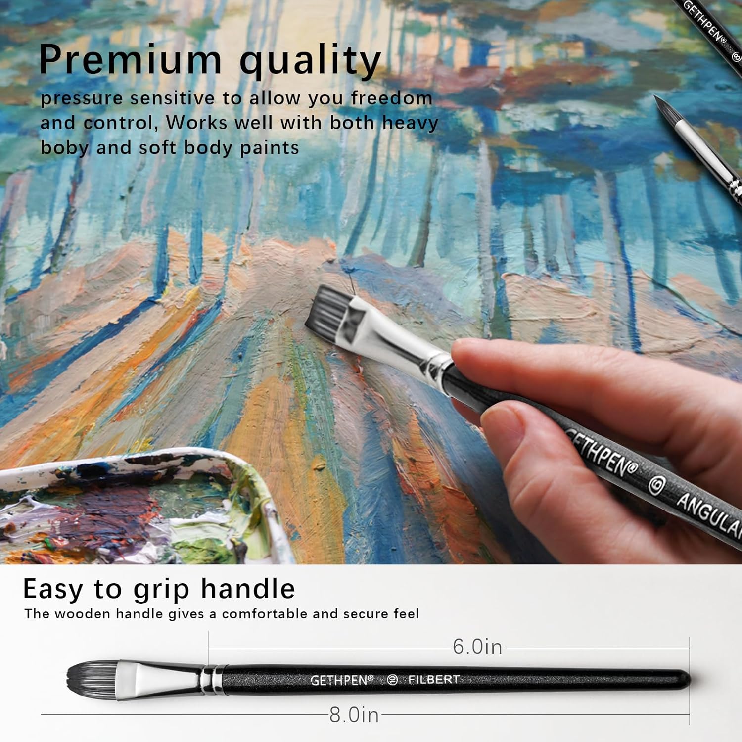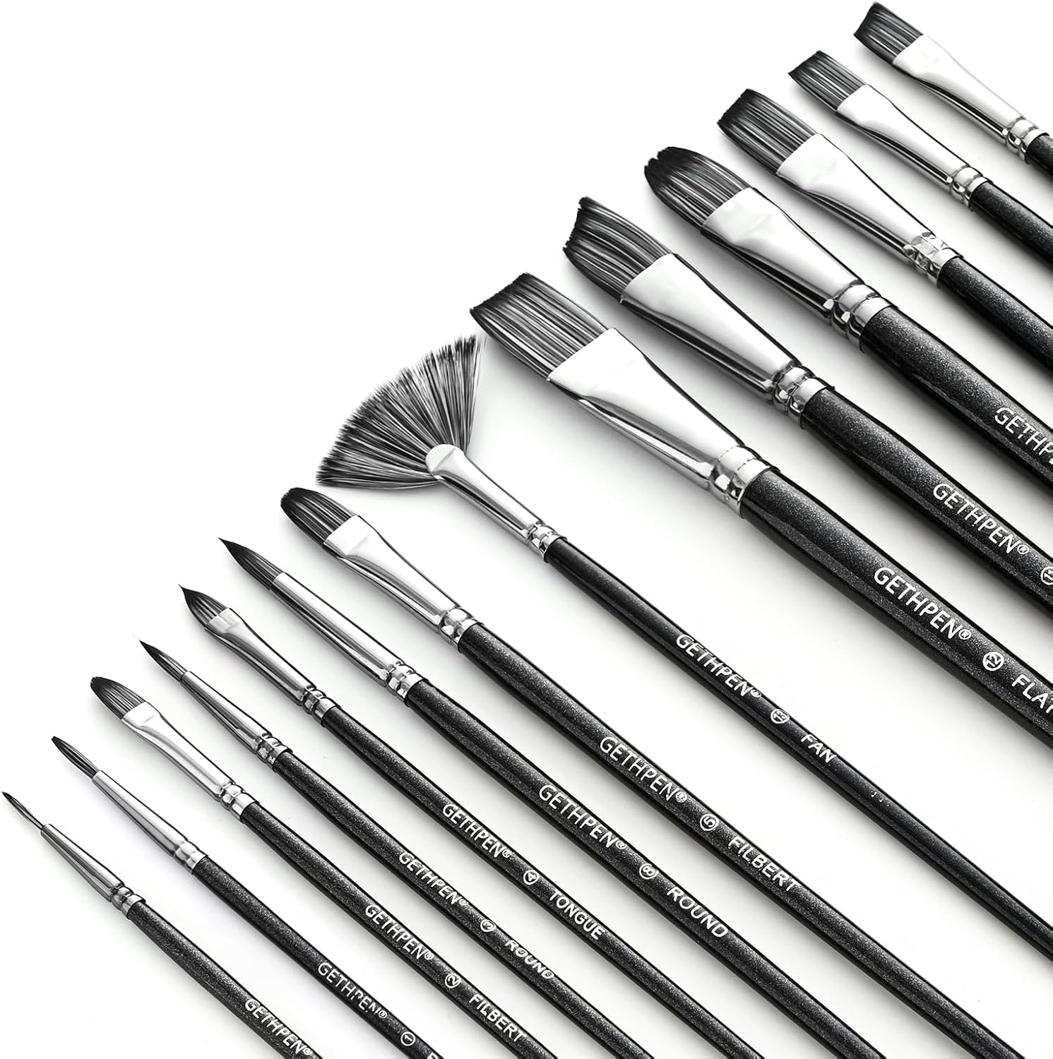 Artist Paint Brush Set of 14 – Paint Brushes for Acrylic Painting, Canvas, Watercolor or Fabric – Painting Art Supplies for Beginners and Experts – Great for Water, Oil or Acrylic Painting