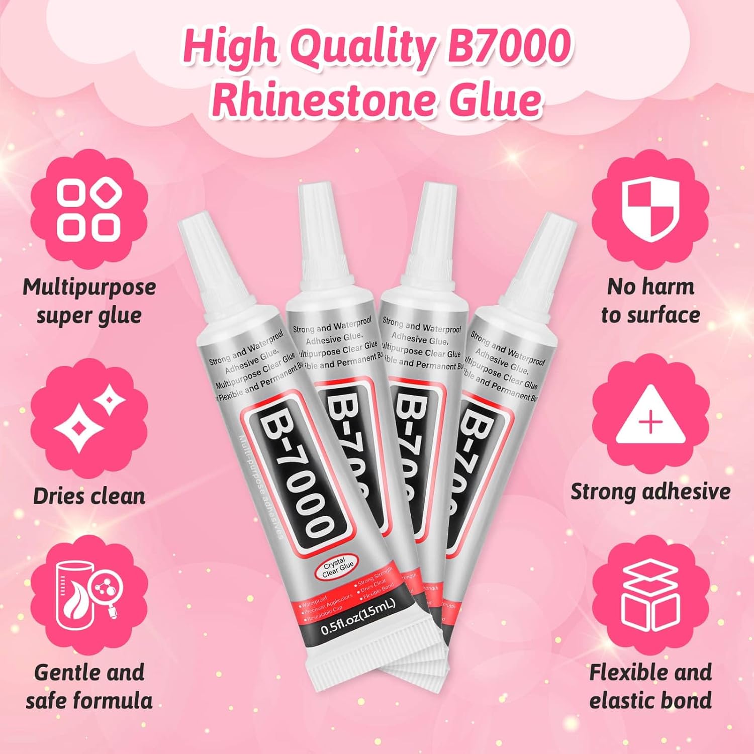 【B7000 Glue for Jewelry and Crafts】B-7000 glue clear with tiny tip allows small adhesive drops precisely. This jewelry-making glue is safe for your hand and the project surface. The waterproof B-7000 glue adhesive drying time is 5 minutes, and it dries totally after 24 hours, slow dry glue gives you enough time for adjustments, and no need to repeat the action of applying the glue frequently. Easier and more convenient than the hotfix rhinestone applicator tools.