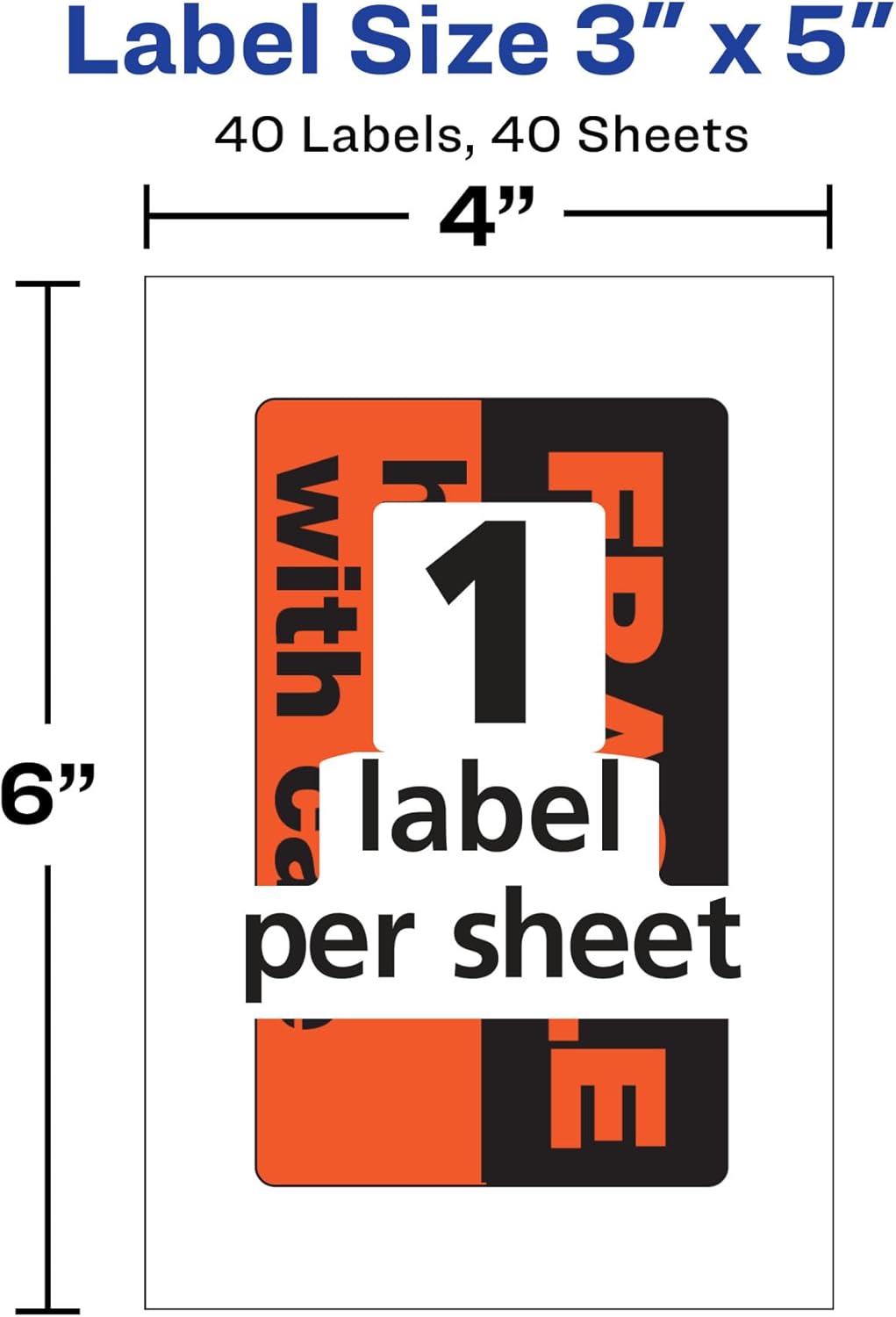 Avery Preprinted Shipping Labels, Fragile Handle with Care” Label Stickers, 3″ x 5″, Non-Printable, 40 Rectangle Labels Total (5283)