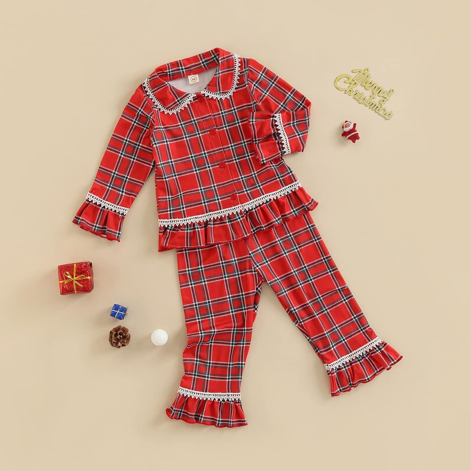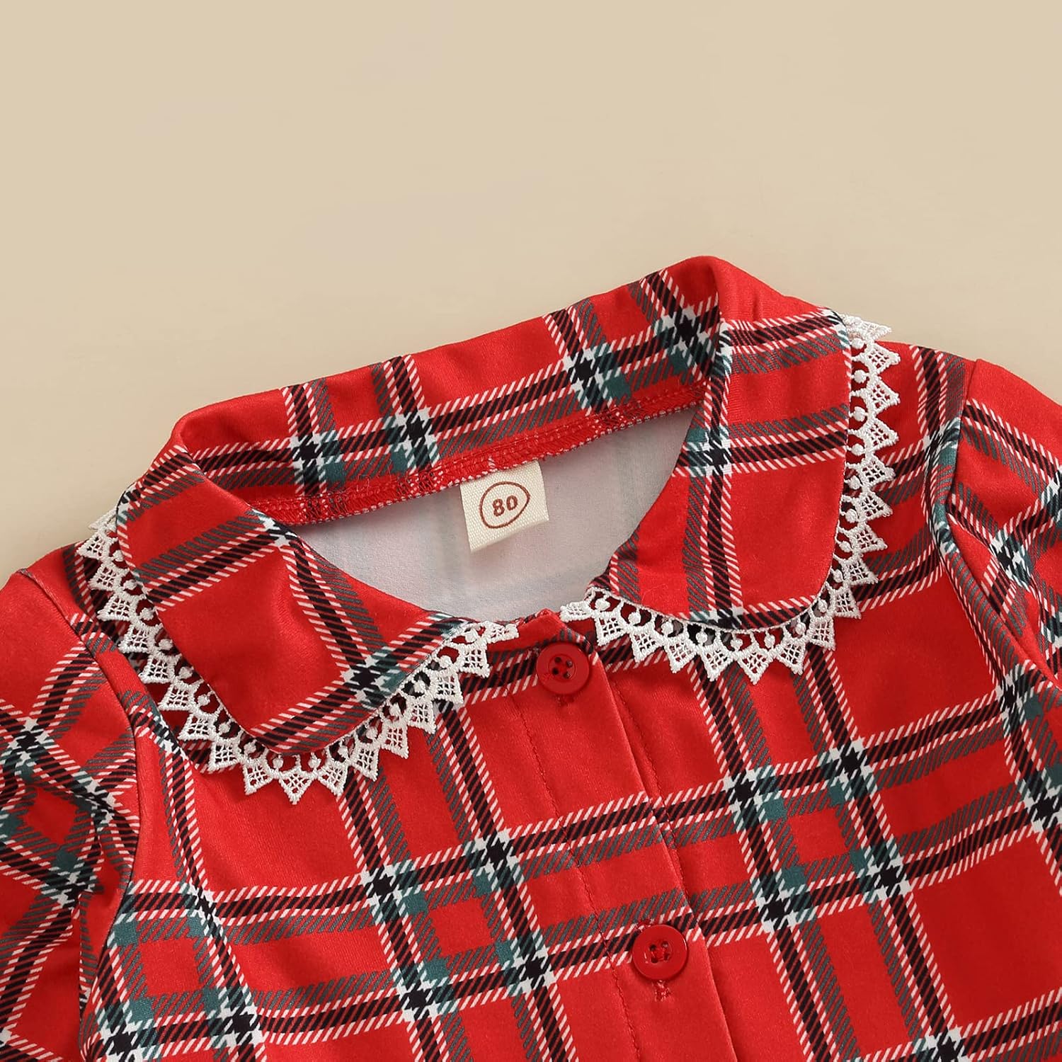 Baby Boy Girl Pajamas Christmas Red Plaid Print Long Sleeve Lapel Collar Button Down Top Shirt Pants Nightwear