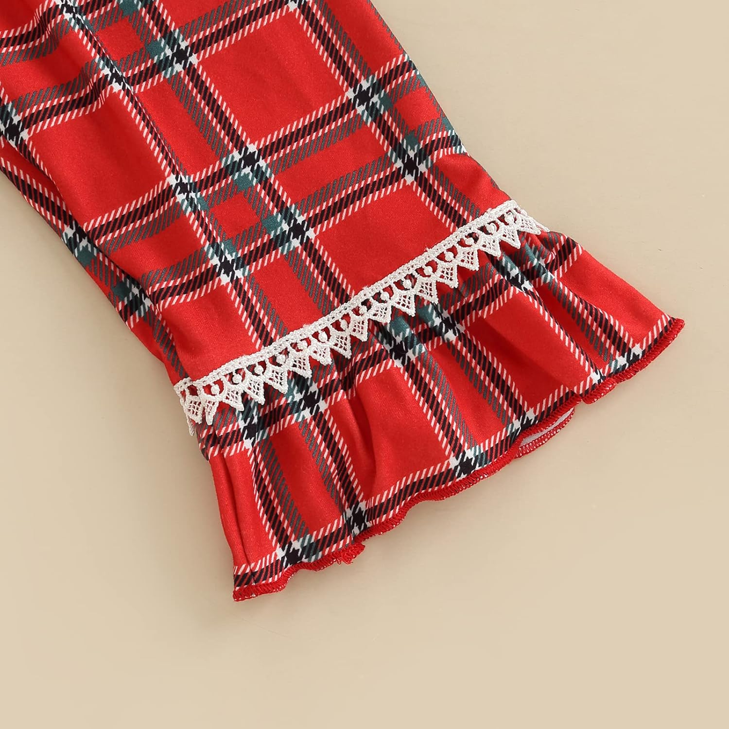 Baby Boy Girl Pajamas Christmas Red Plaid Print Long Sleeve Lapel Collar Button Down Top Shirt Pants Nightwear