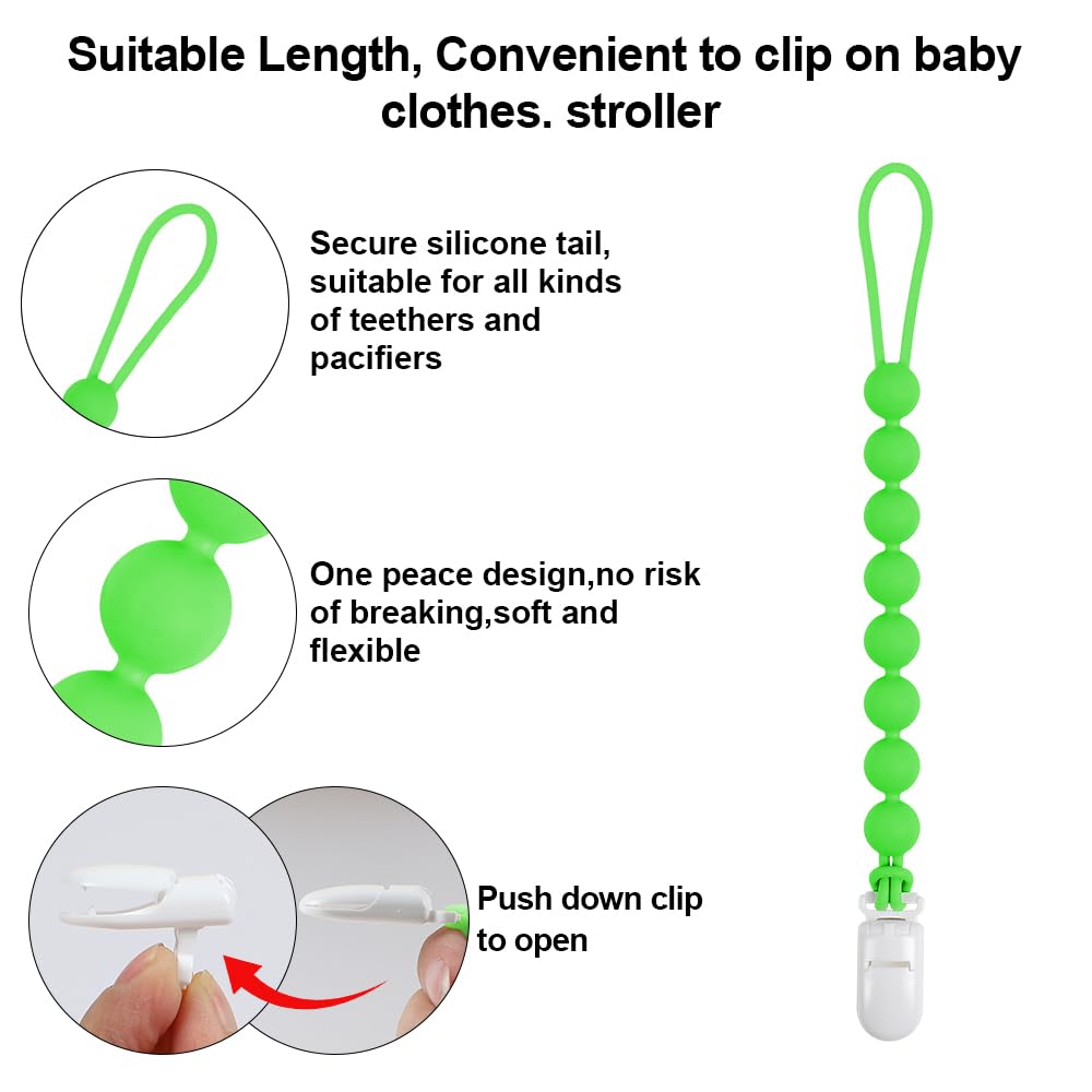 Make Parents Easy: Our teethers are perfect size and easy-grasp design for baby to hold,Strong plastic clip can be clipped on baby clothes,blankets,toys,strollers,or car seats,the suitable length design prevents the baby’s pacifier and teether toys from falling to the ground.