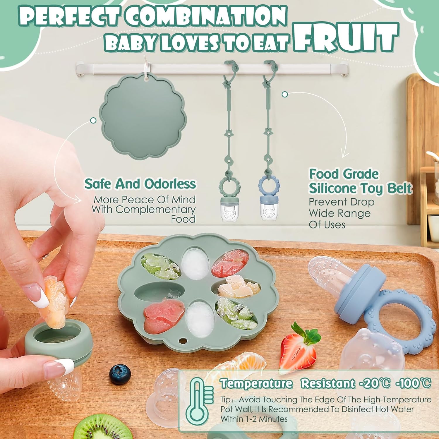 🍇【BABY FOOD FREEZER TRAY & baby toy safety straps】 – Our baby food containers turn out to be the perfect combination when paired with baby food freezer tray and baby toy safety straps, which are made of 100% food-grade silicone material,BPA Free, Latex Free, Lead Free and Phthalates Free.Batch prep baby food, purees, breastmilk, and more,then store your food in the tray or transfer it to a freezer bag to make multiple batches.