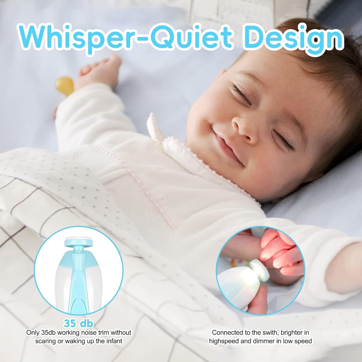 ❤【Noiseless Design】The volume of this baby nail file is only 35 dB. When your baby is sleeping, you can use this nail trimmer to grand your baby’s nail, will not disturb your baby’s sleep, and you can trim and care for your nails in dim and dark environment.