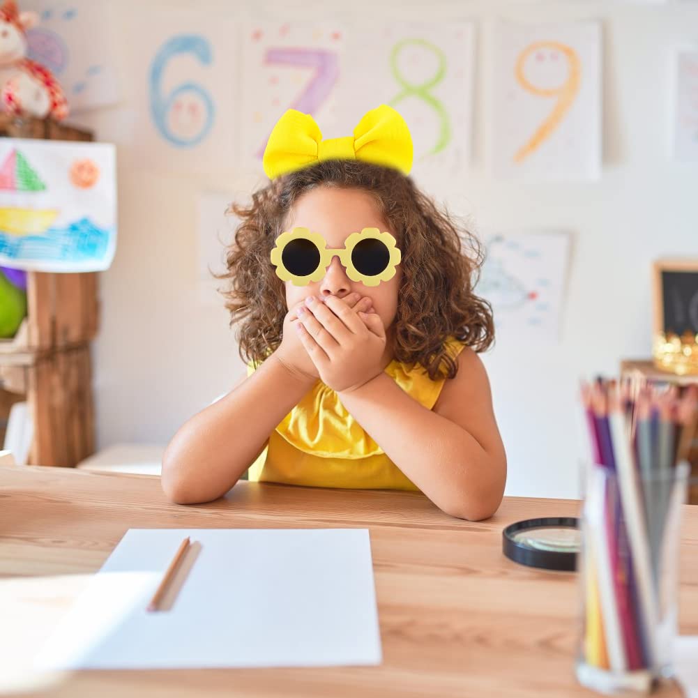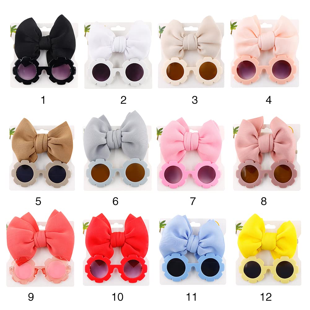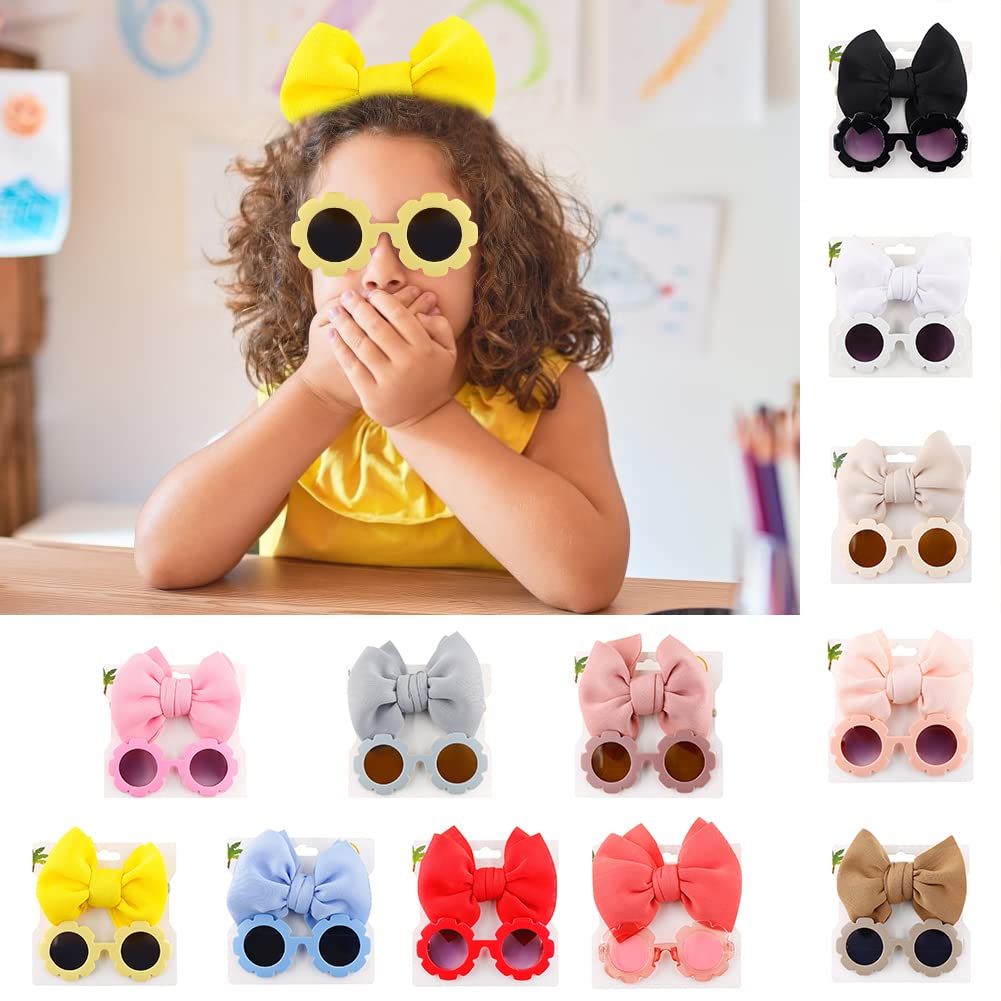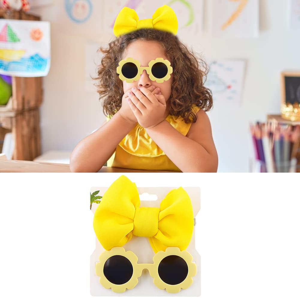 Children’s Nylon Bow Headbands Hairbands with Sunglass Combination Set,Flower Shaped Sunglasses Hair Accessories for Baby Girls Newborns Infants Toddlers Kids