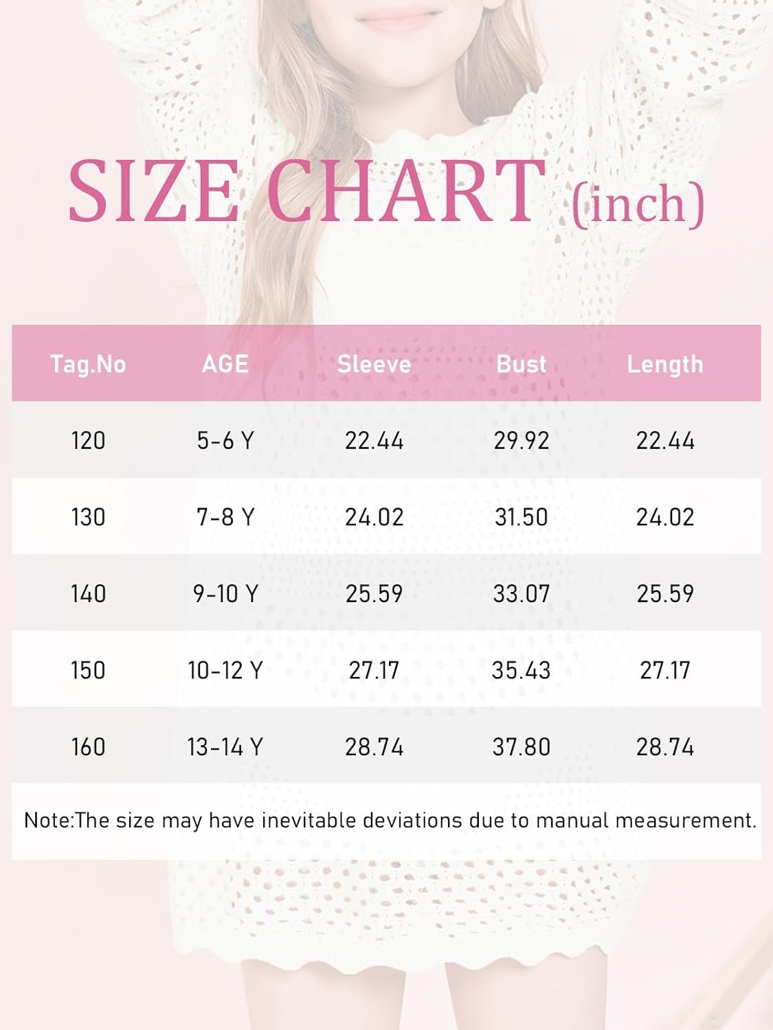 Batermoon Girls Crochet Long Sleeve Swimsuit Cover Up Kids Fashion Hollow Out Swimwear Beach Dress 5-14 Years