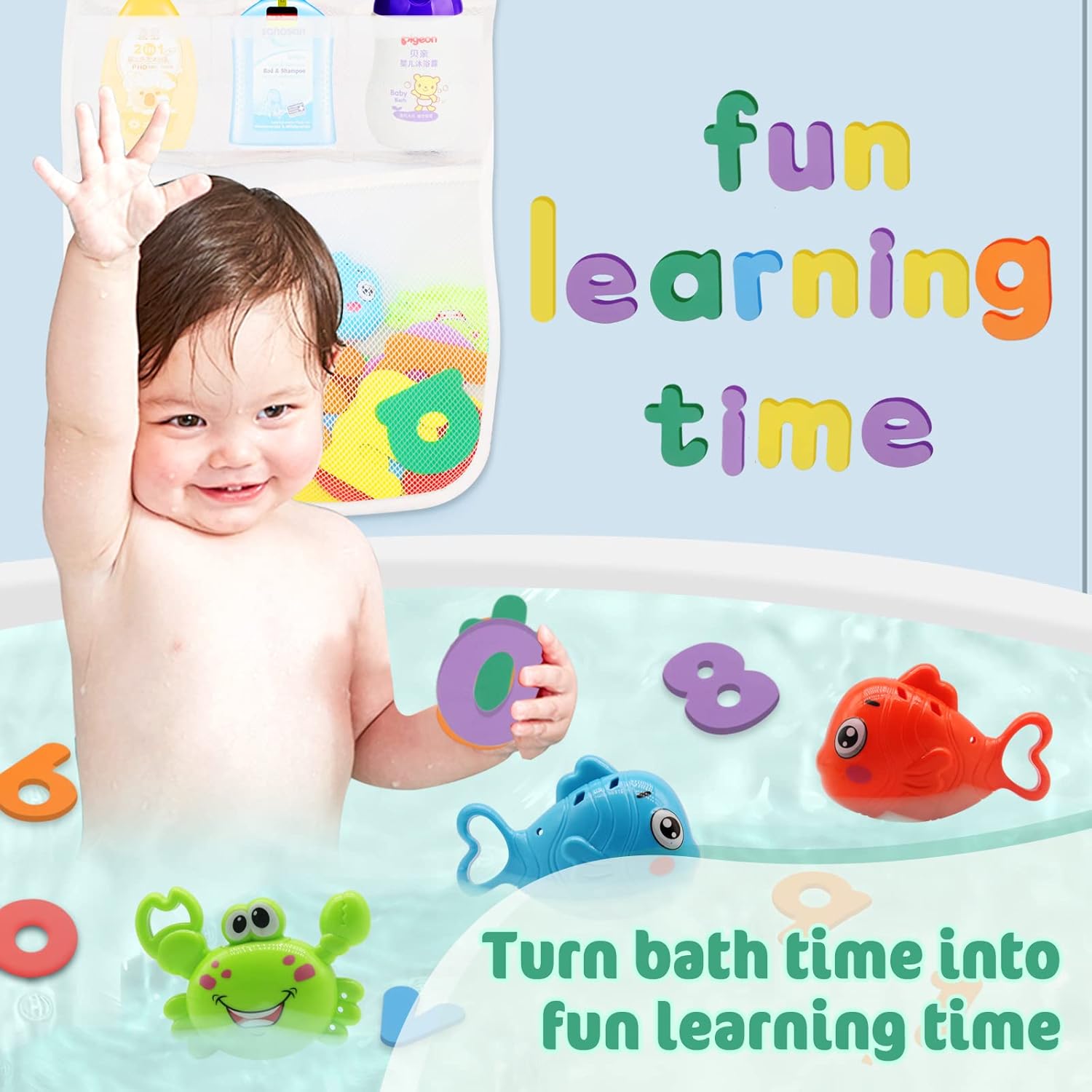 Bath Toys Set for Toddlers 1-3, Bath Toy Storage Bag Hooks,Baby Bathtub Toys with 36 Letters and Numbers,Shower Toys Bath Time with 3 Fishing Toys and Water Gun Floating for Baby Pool Toys