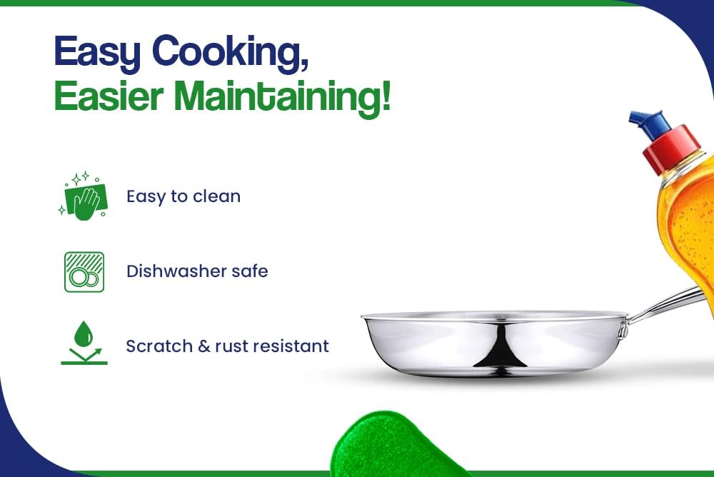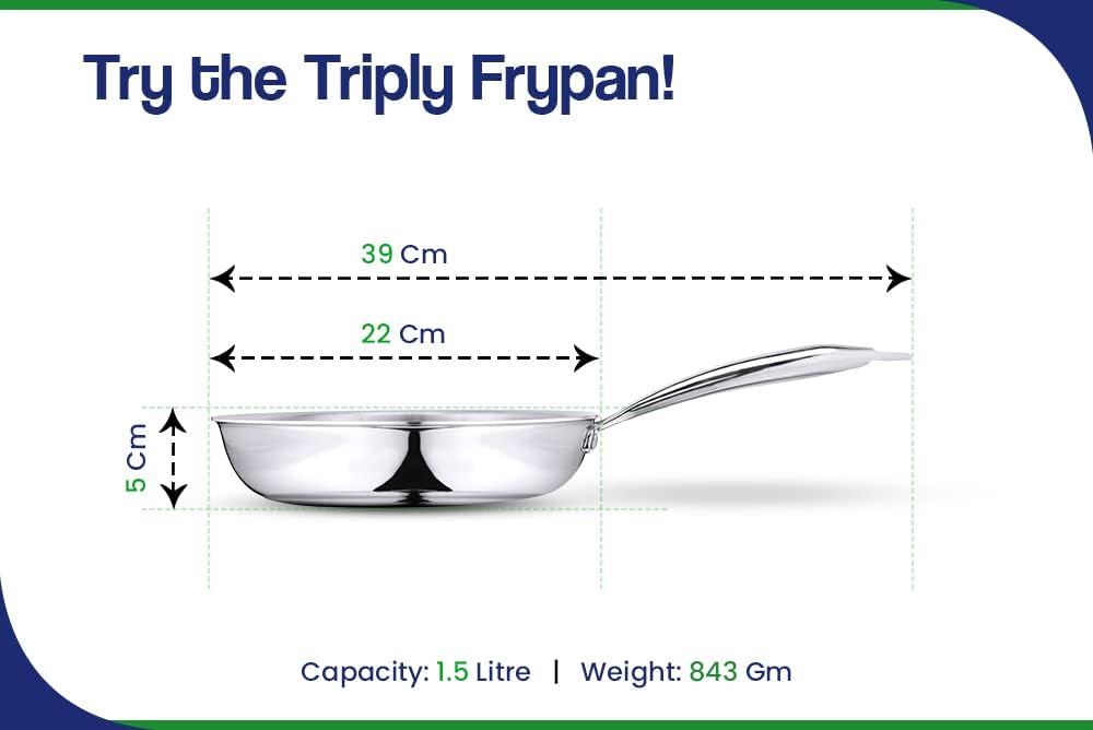 Bhalaria Stainless Steel Triply Fry Pan 22Cm 1 Litre (Induction and Dishwasher Compatible)