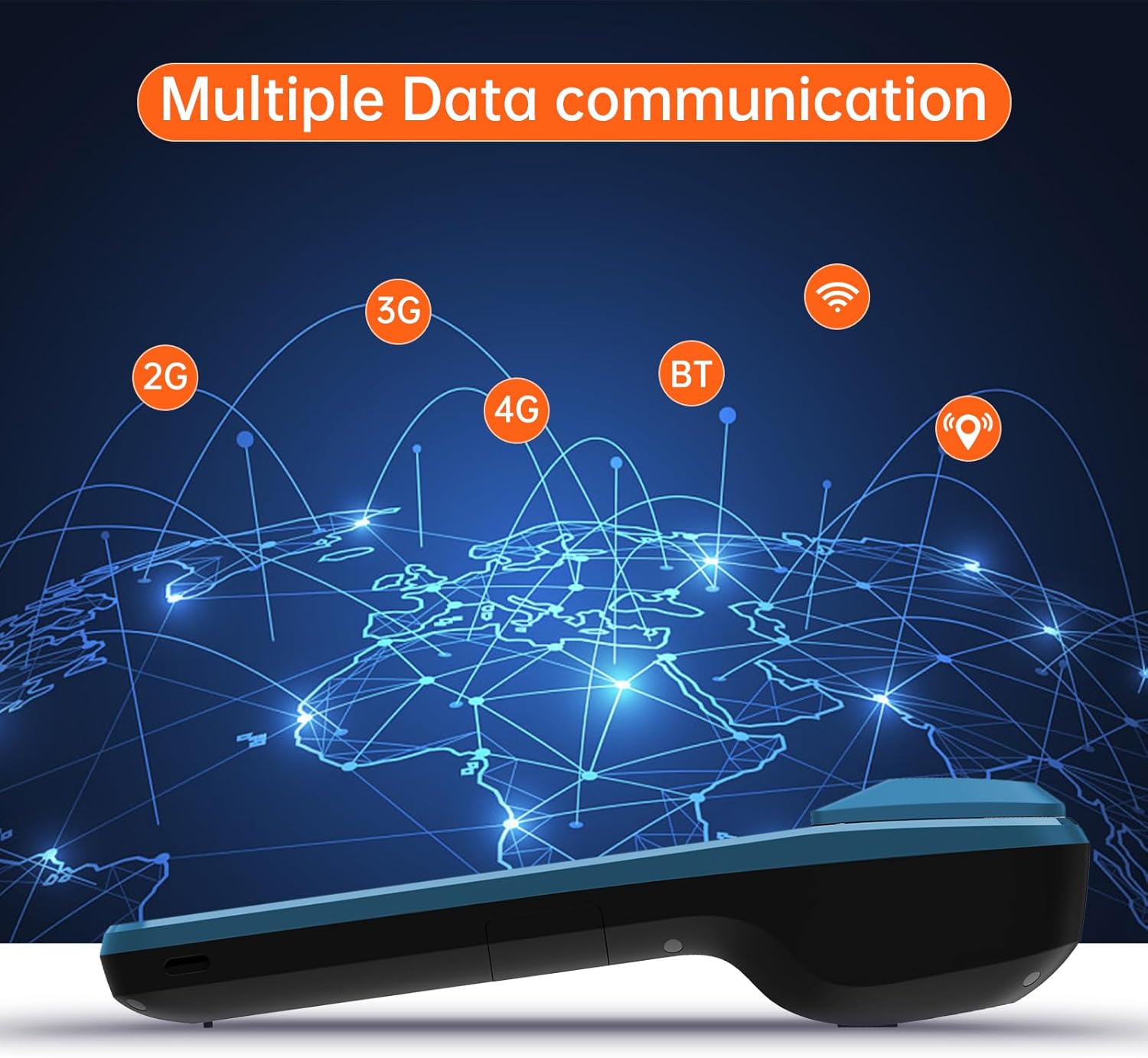 Bisofice 4G Handheld PDA POS Android 11.0 Receipt Printer 2GB+16GB, Camera 5M, 1D 2D Barcode Scanner, Wifi/Gps/BT/4G Full Network Connection, 5″ Touchscreen 58mm Width Thermal Label Printing