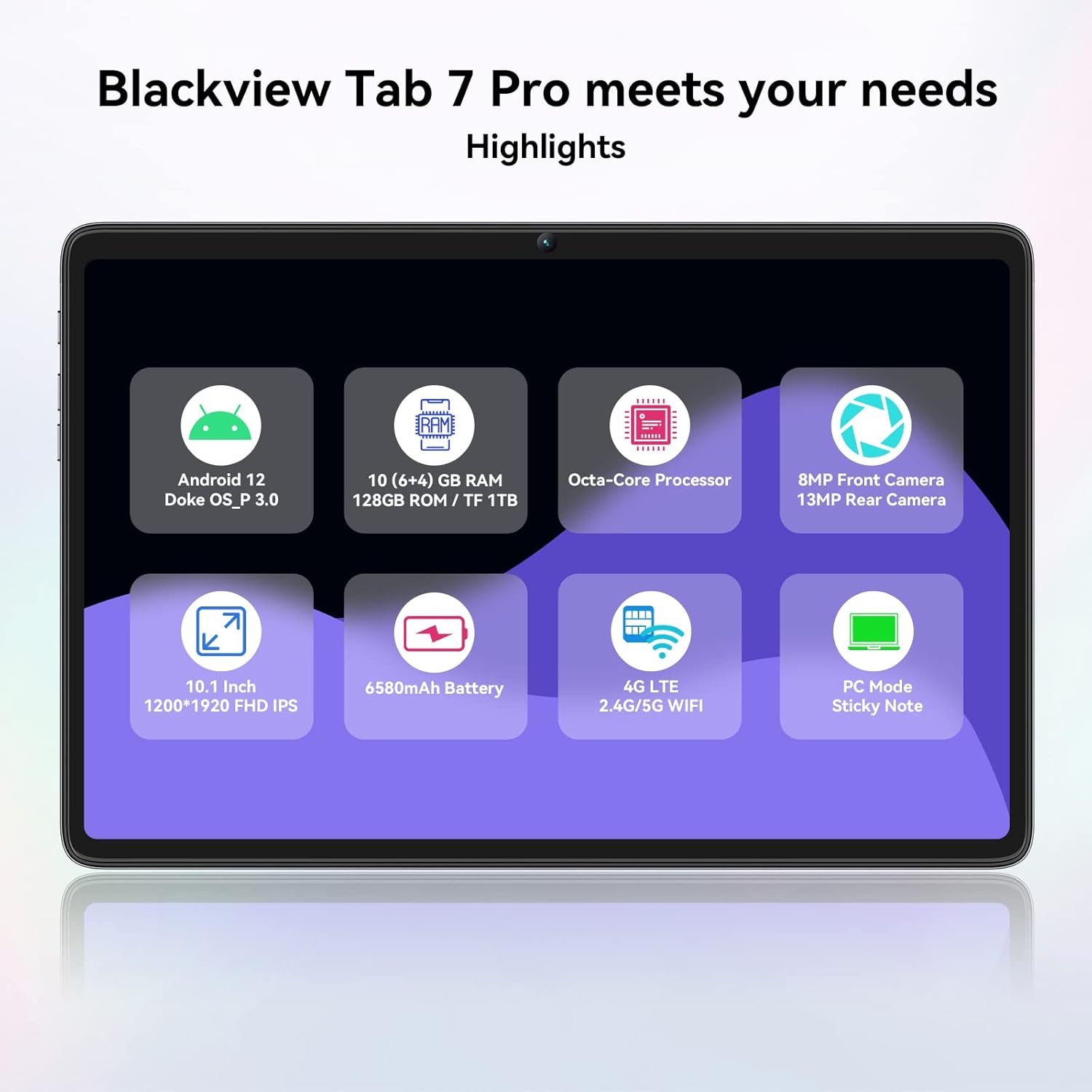 Blackview Android 12 Tablet, 10GB RAM 128GB ROM 1TB Expand 10 inch Tablet Tab 7 Pro, FHD 1920*1200 Display 13MP Camera Dual Band 5G WiFi Tablet Computer, 6580mAh GPS Cheap Tablets, Space Gray