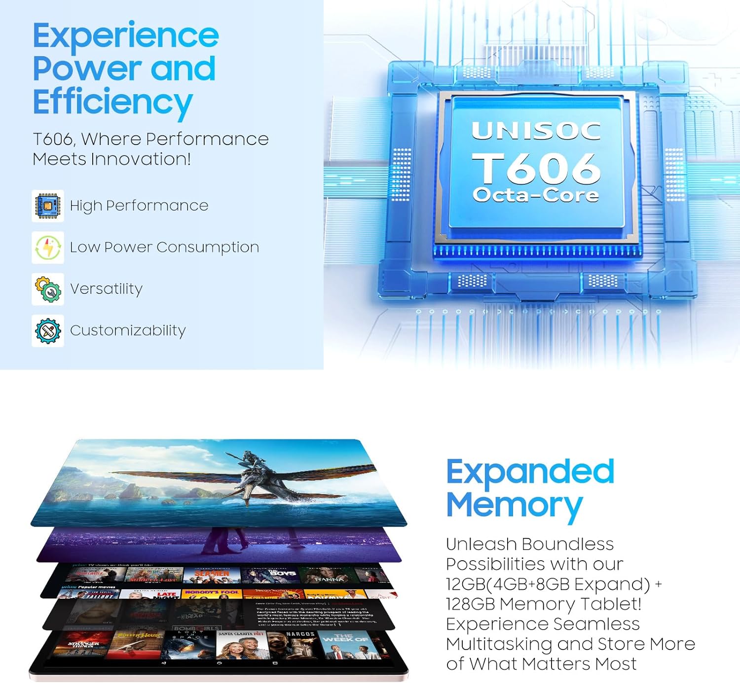 1 Android 14 System 2 Octa-Core T606 3 11 Inch Large Screen 4 PC Mode