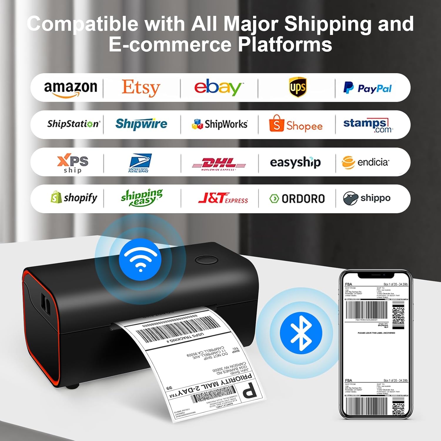 Bluetooth Thermal Label Printer 4×6,Shipping Label Printer,Thermal Printer Compatible with iOS, Android, Windows,Mac, Amazon, Ebay, Etsy, USPS