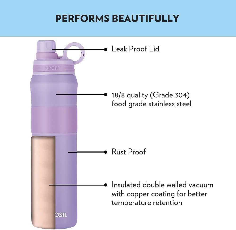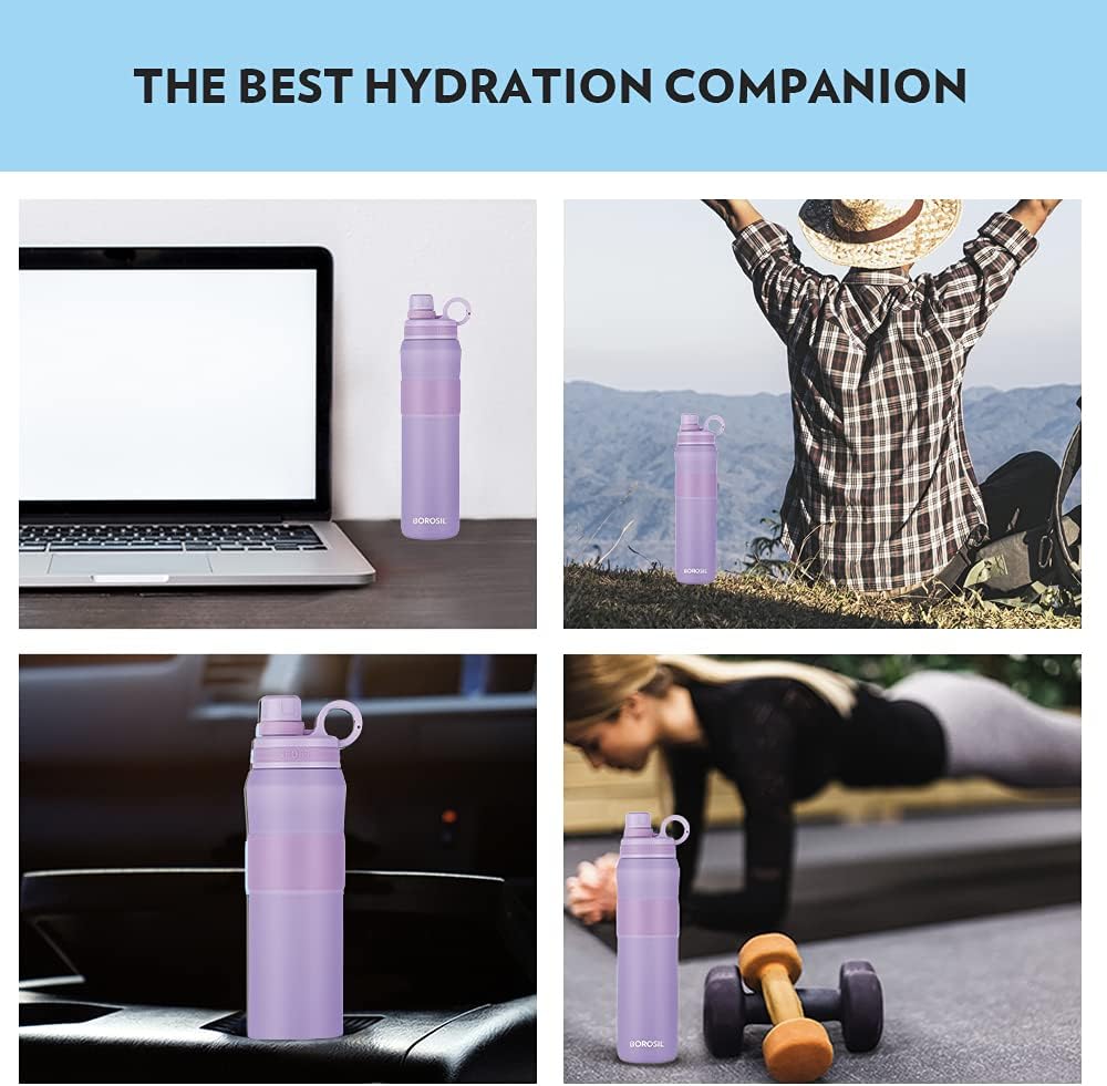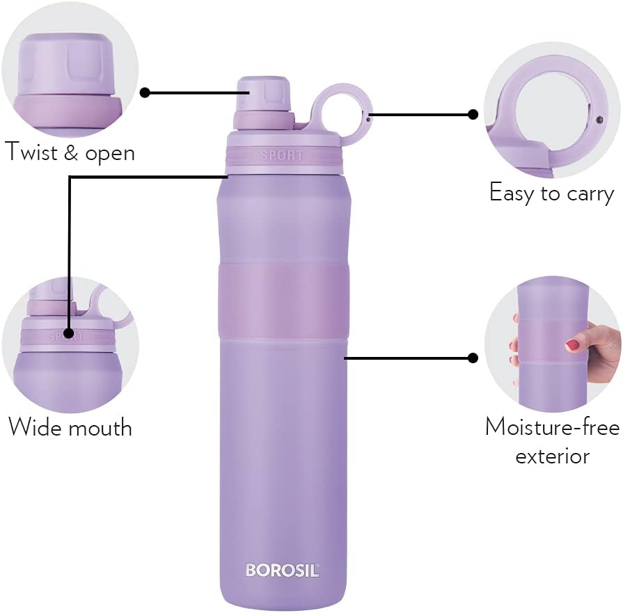 Borosil Hydra Thirst Burst Lavender Water Bottle, Stainless Steel Water Bottles, Vacuum Insulated Flask Bottles, 800 ml, Lavender Light Purple
