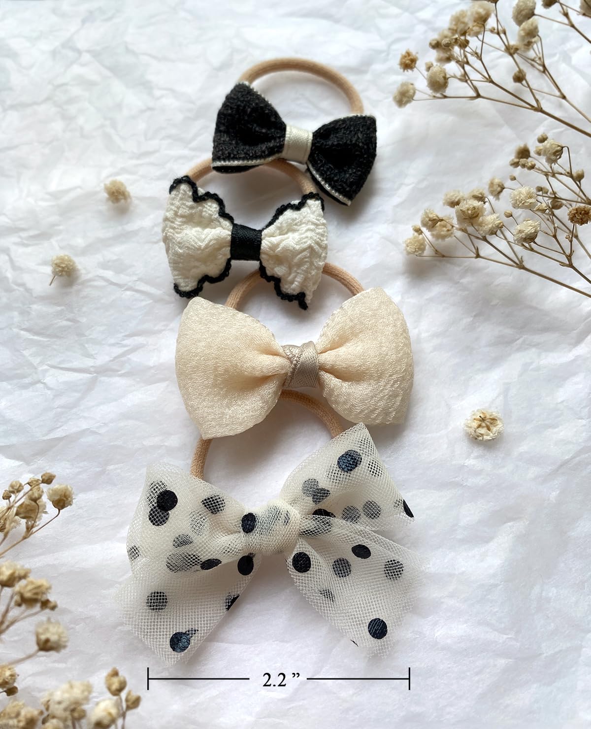 CUTE SIZE: Our small elastic bands are about 1.4 inches in diameter, these bows are about 1.6 to 2.2 inches, and the flowers are 1.7 inches in diameter. Our baby pigtail bows are perfect for toddlers, little girls and kids under 6 years old.