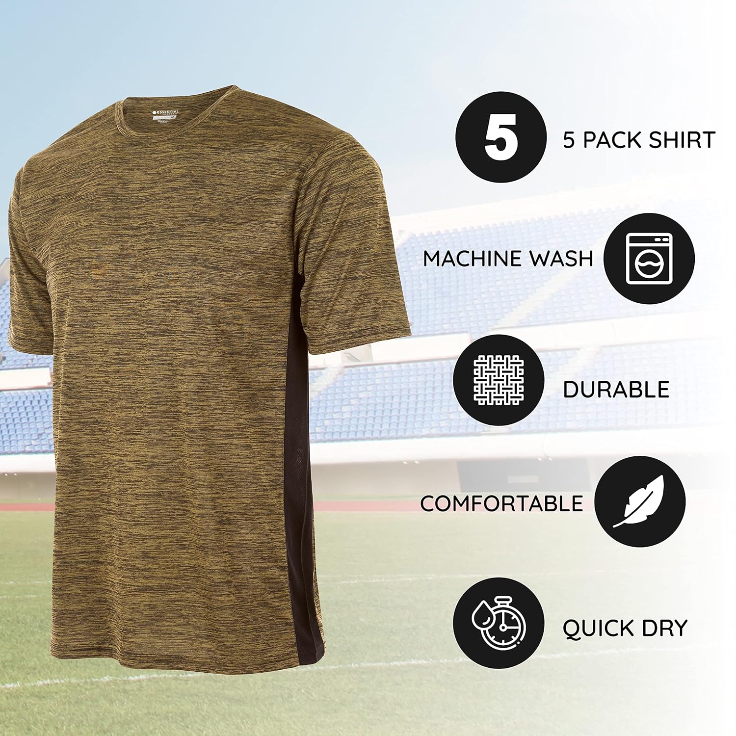 Boys Active T-Shirt – Quick-Dry Athletic Workout Training Stretch Crew Neck Short Sleeve Top 5 Pack
