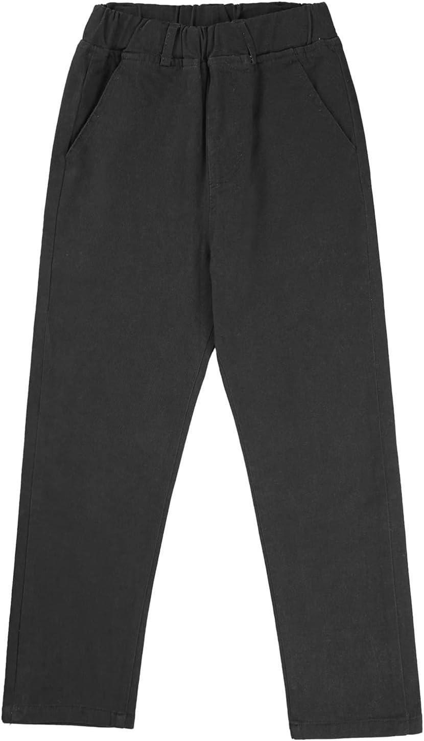 Boy’s Chino Trousers Kids Casual Athletic Solid Pocket Pull On Straight Long Pants