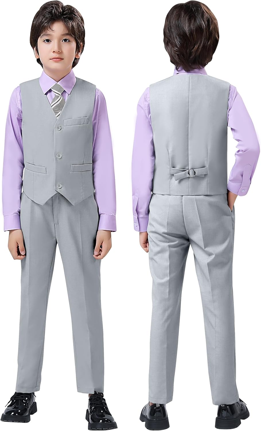 Boys Suit for Kids Tuxedo Vest and Pants Set with Shirt Tie and Bowtie Formal Dresswear