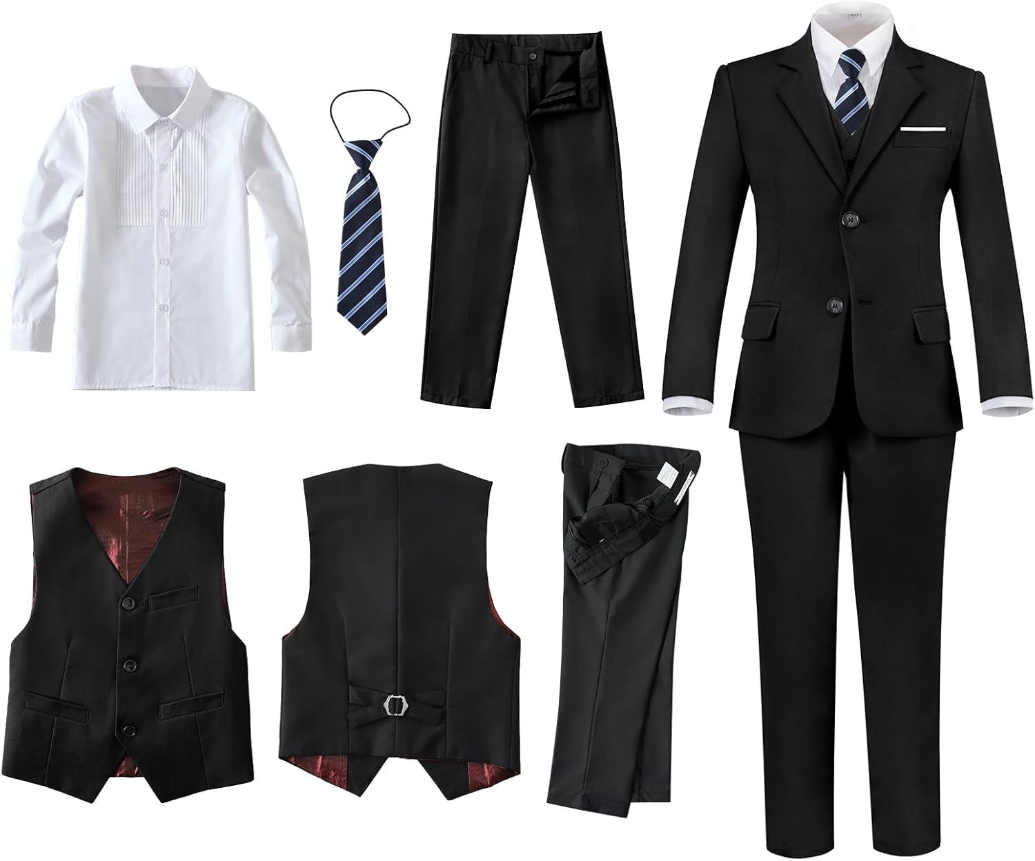 Boys Suits 5 Piece Formal Suit Set Slim Fit Formal Dress Clothes Ring Bearer Outfit for Kids
