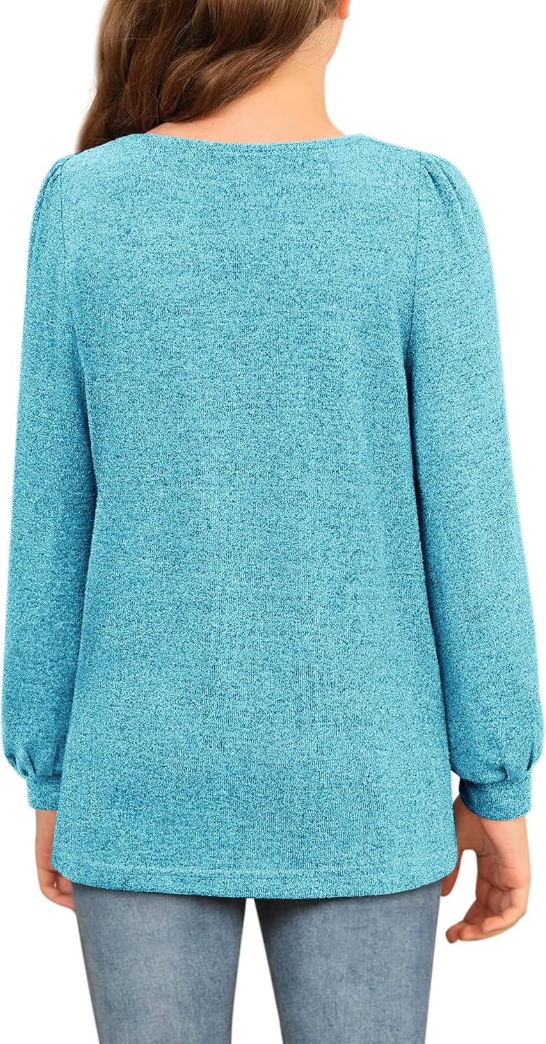 Girls Trendy Lightweight Long Sleeve Top Basic Plain Shirts Fall Winter Clothing