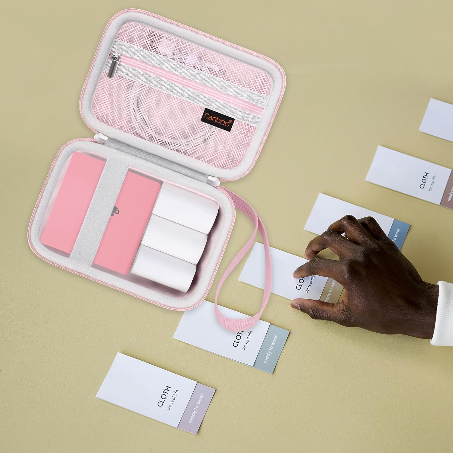Canboc phomemo m02 printer holder designed to provide a full range of protection for M02/ T02/ M02S/ M02 Pro/ Q30S portable bluetooth label printer. This label maker storage bag is portable, anti-fall, easy to clear and perfect combination of style and utility, a must-have in your daily life.
